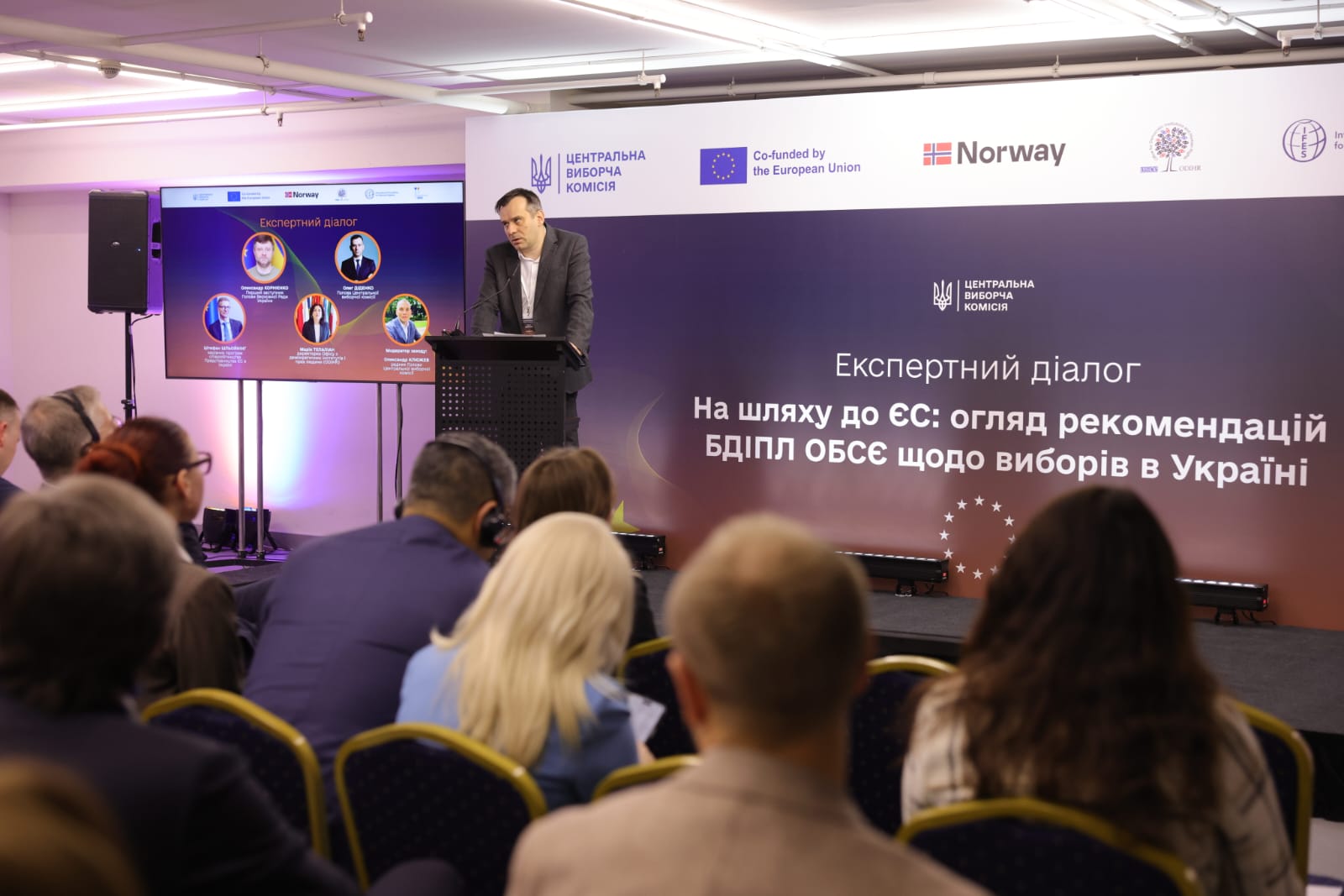Керівник програм співробітництва Представництва ЄС в Україні Штефан Шльойнінг у вітальному слові акцентував, що експертний діалог тісно пов’язаний із процесом набуття Україною членства в ЄС, де наша держава зобов’язується підтримувати демократичні принципи, забезпечуючи інклюзивність, справедливість і легітимність виборів.