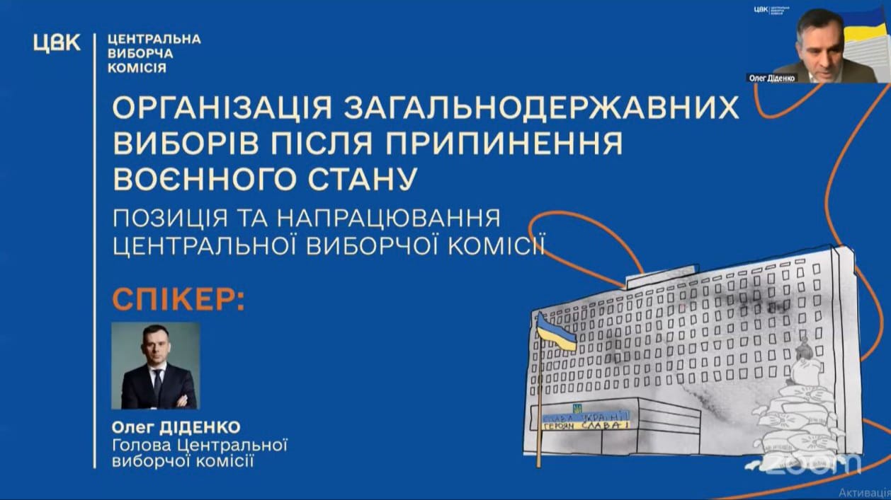 Голова Центральної виборчої комісії Олег Діденко презентував пропозиції ЦВК щодо законодавчого врегулювання виборів в Україні після припинення чи скасування воєнного стану.