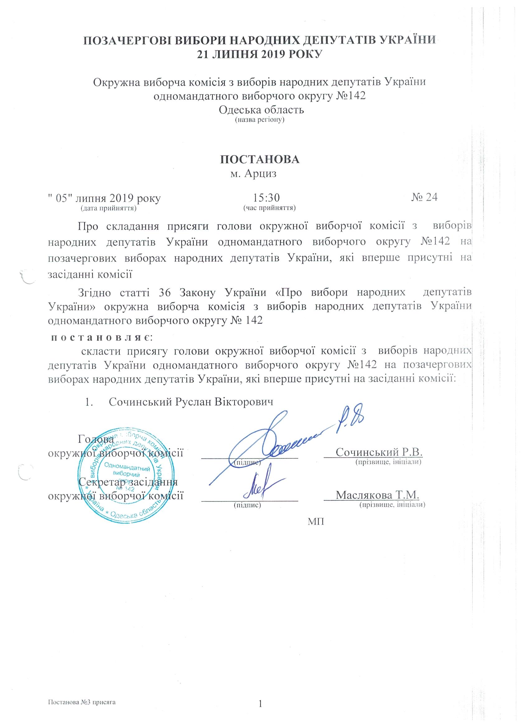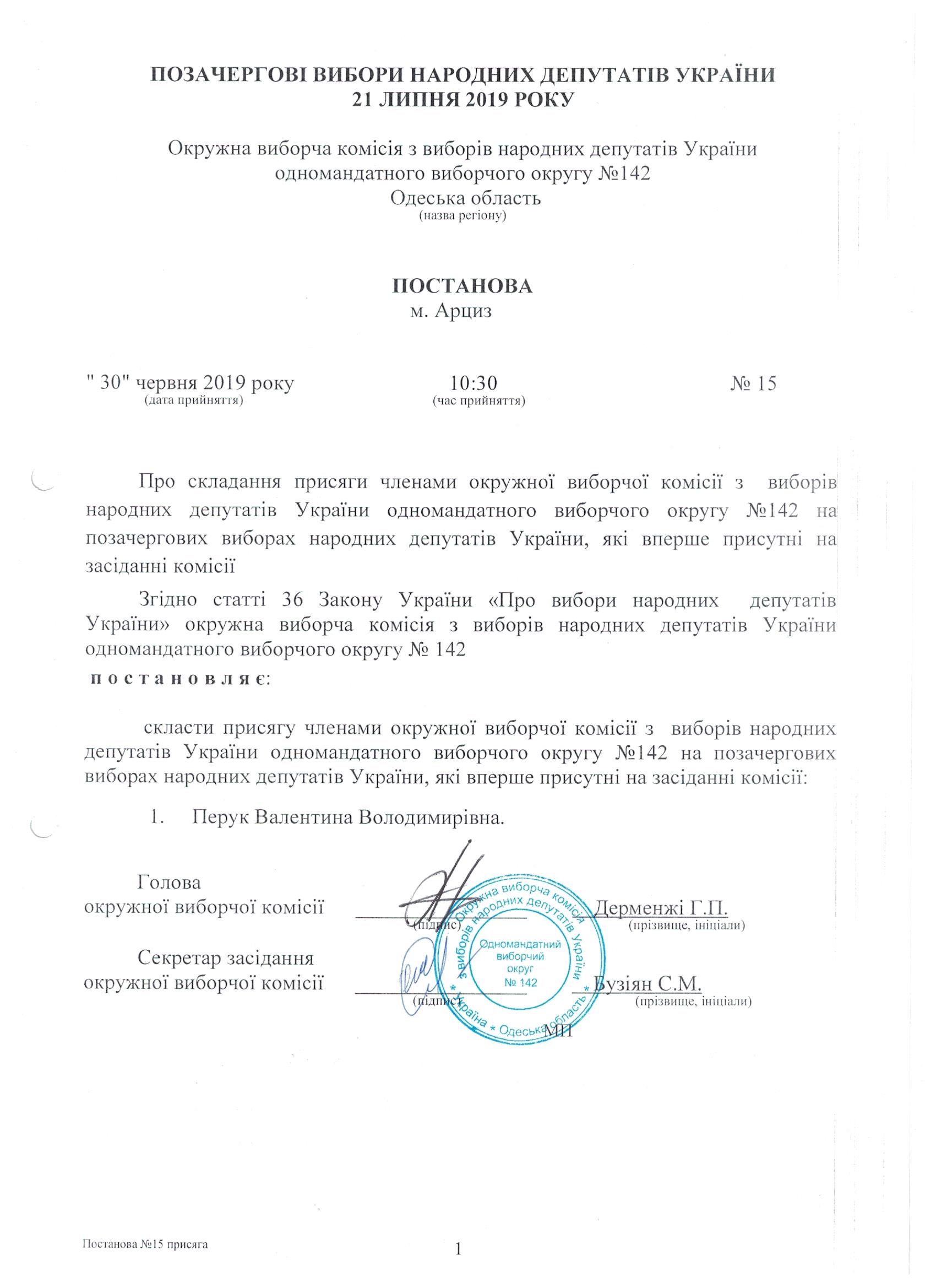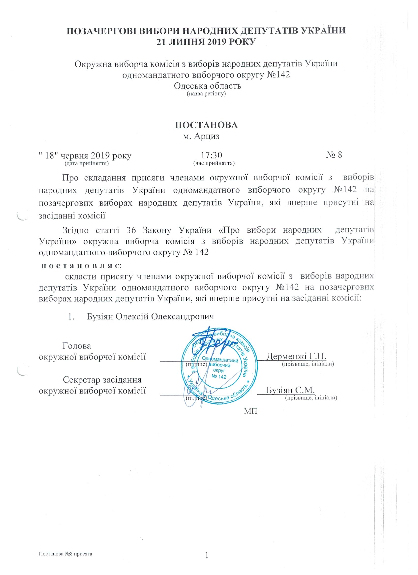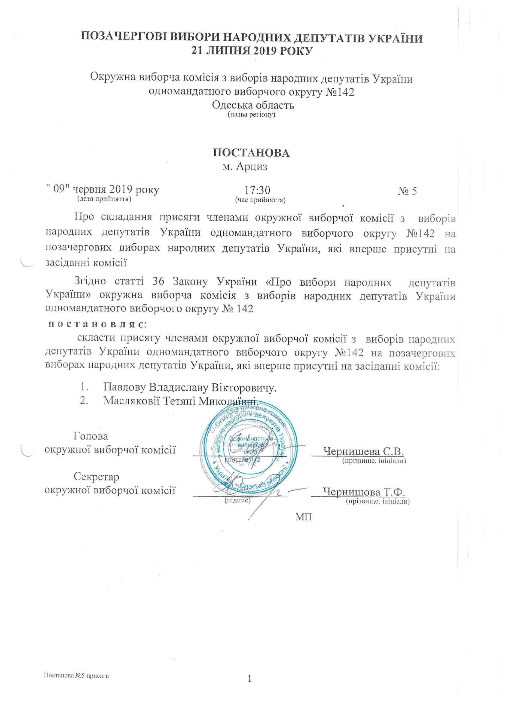 Про складання присяги членами ОВК з виборів народних депутатів України ОВО № 142, які вперше присутні на засіданні комісії |