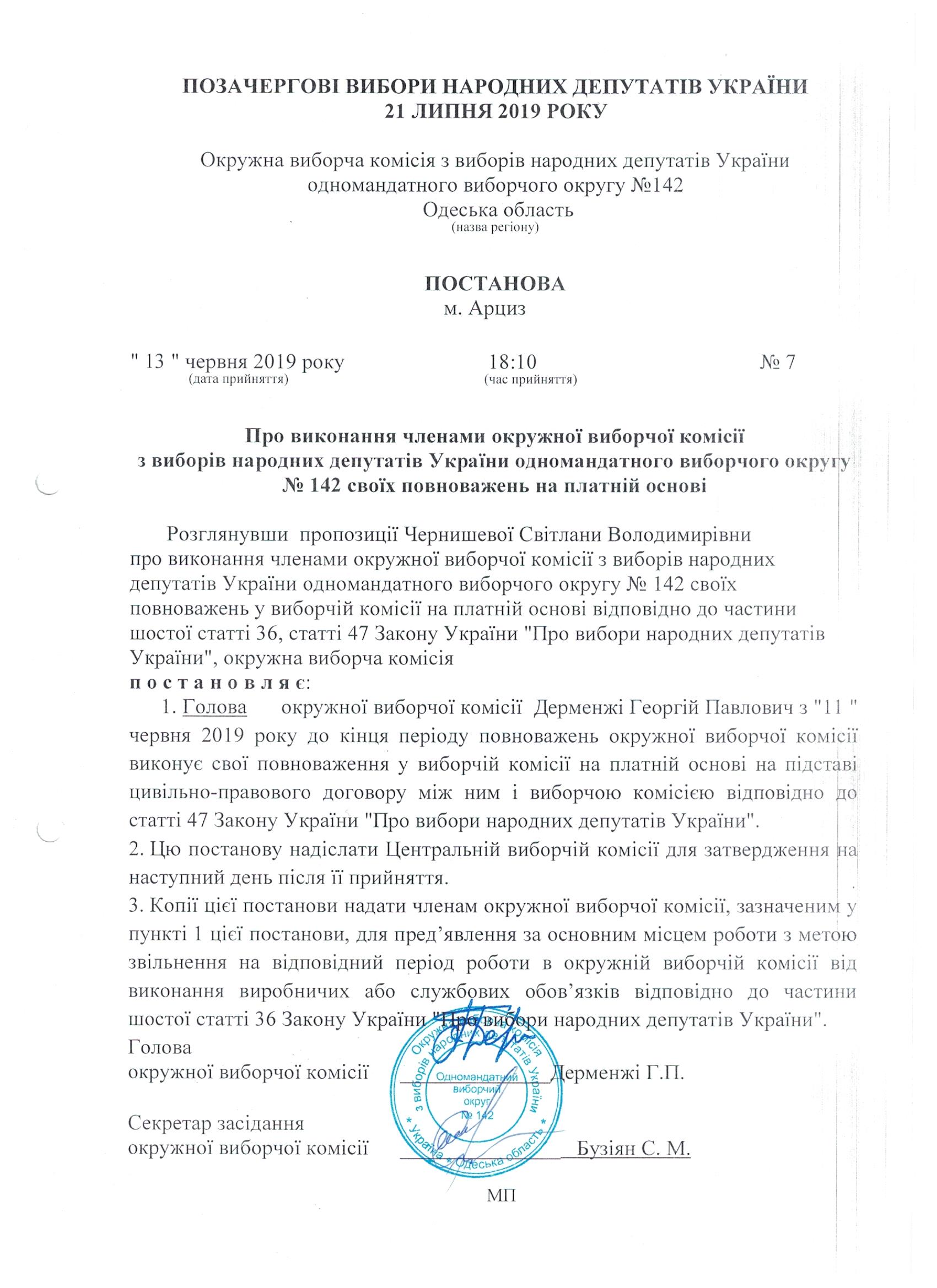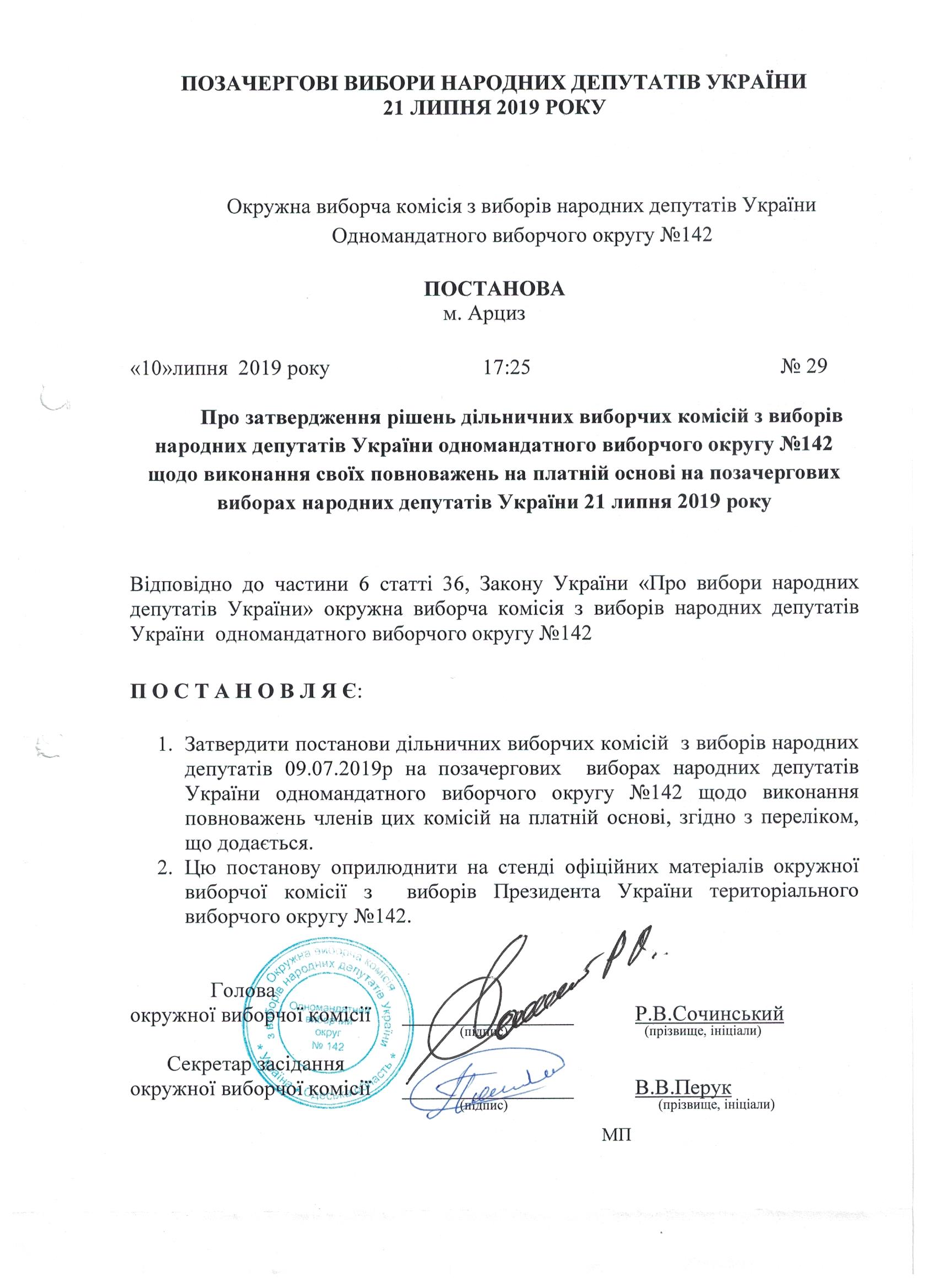 Про виконання членами ОВК з виборів народних депутатів України ОВО № 142 своїх повноважень на платній основі |