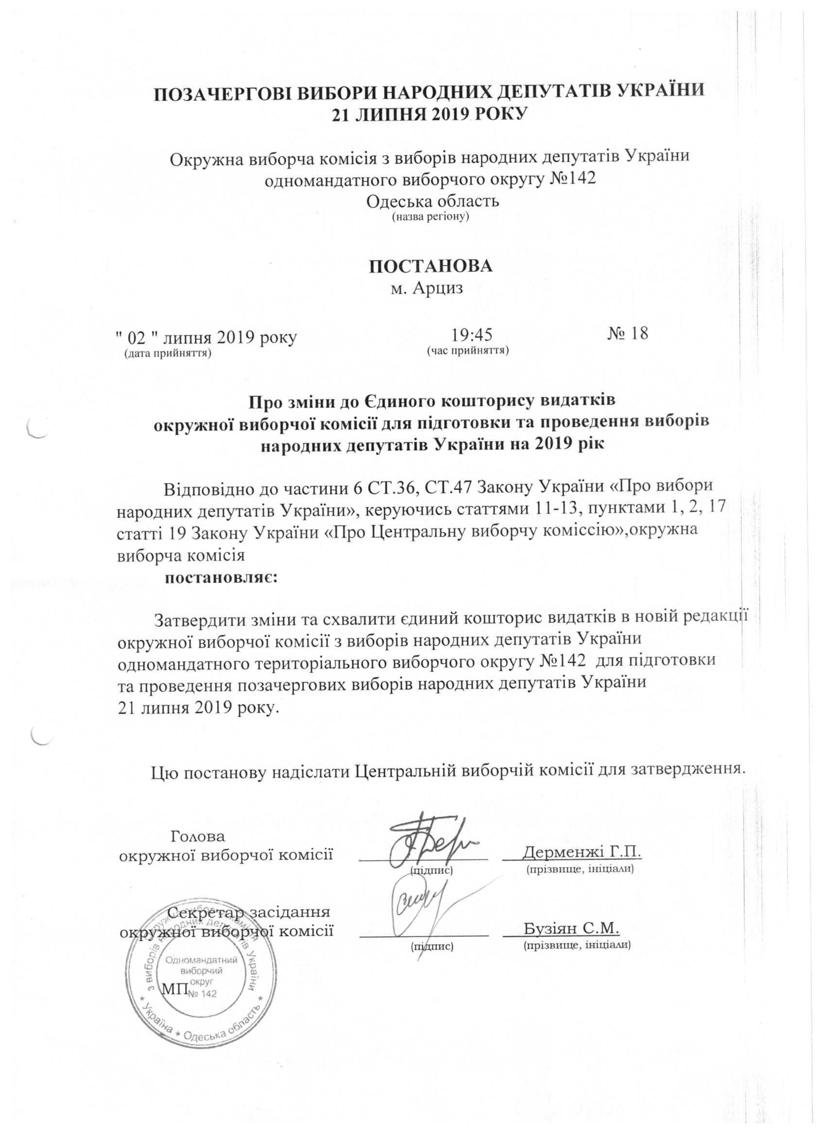 Про єдиний кошторис видатків ОВК для підготовки та проведення виборів народних депутатів України на 2019 рік |