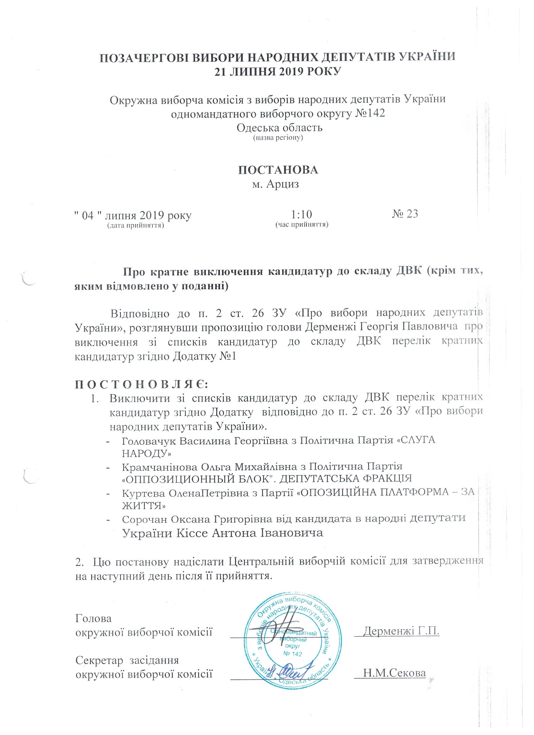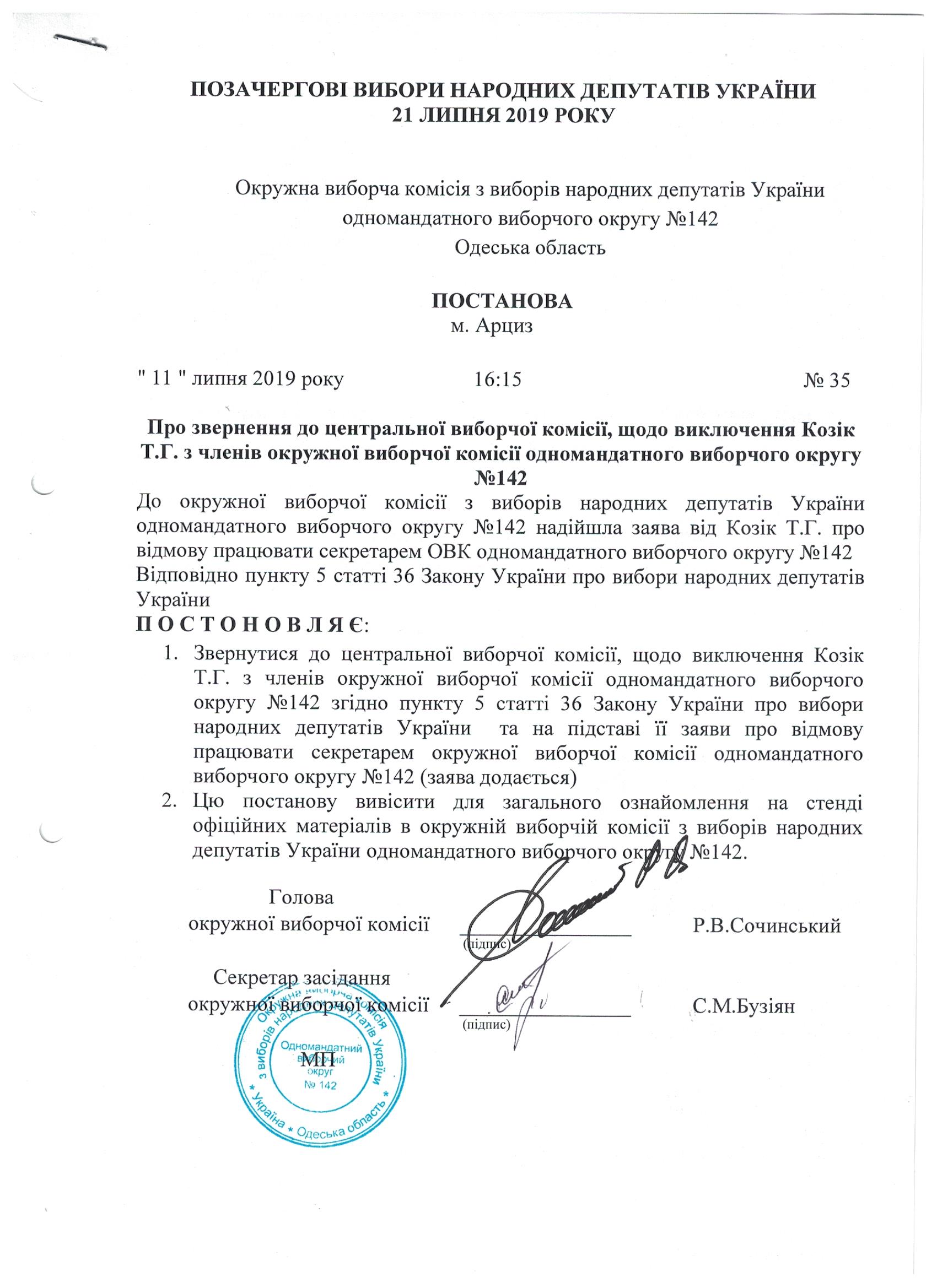 Про звернення до Центральної виборчої комісії, щодо виключення Козік Т.Г. з членів ОВК |