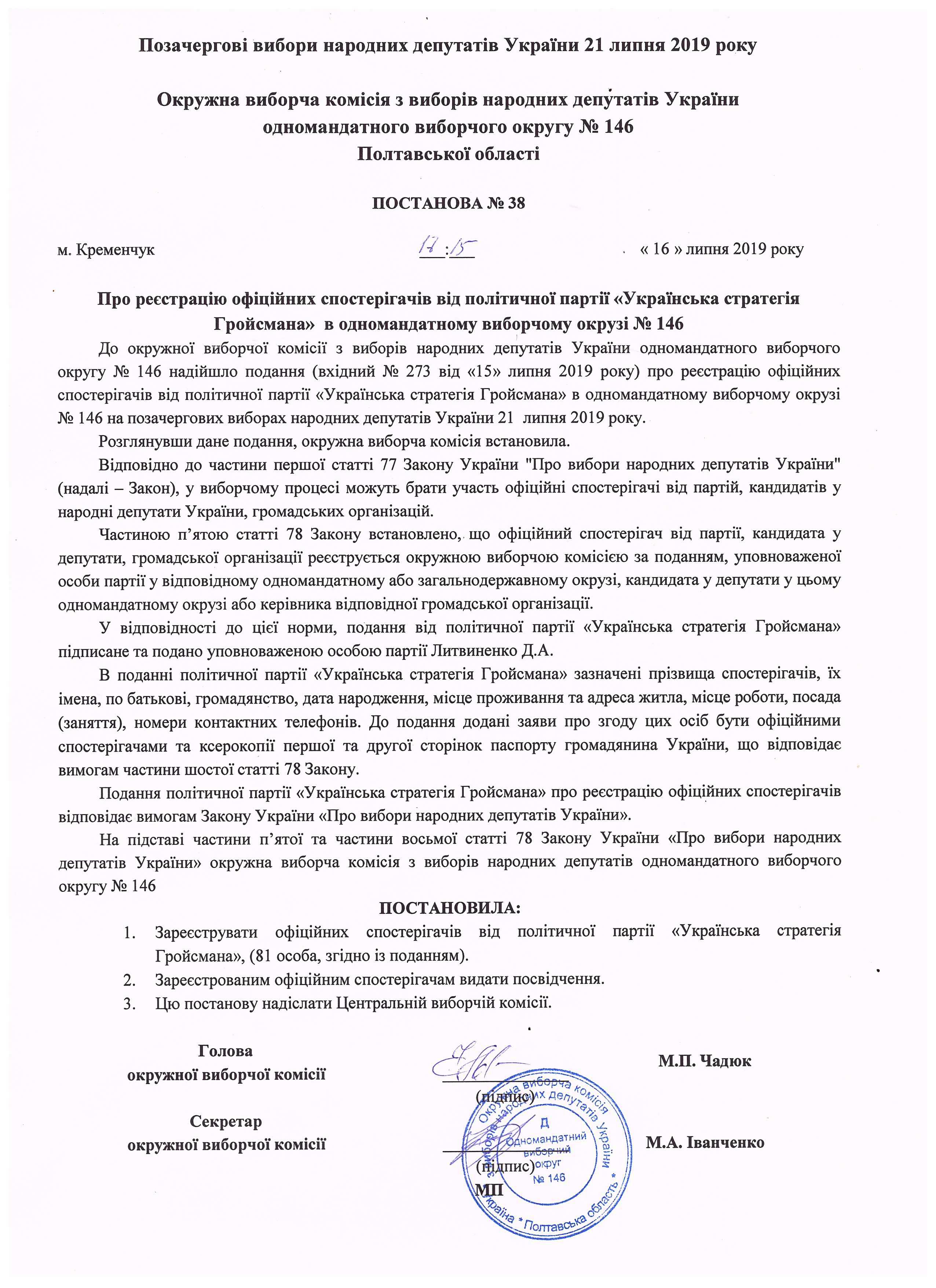 | 38 від 16.07.2019 |