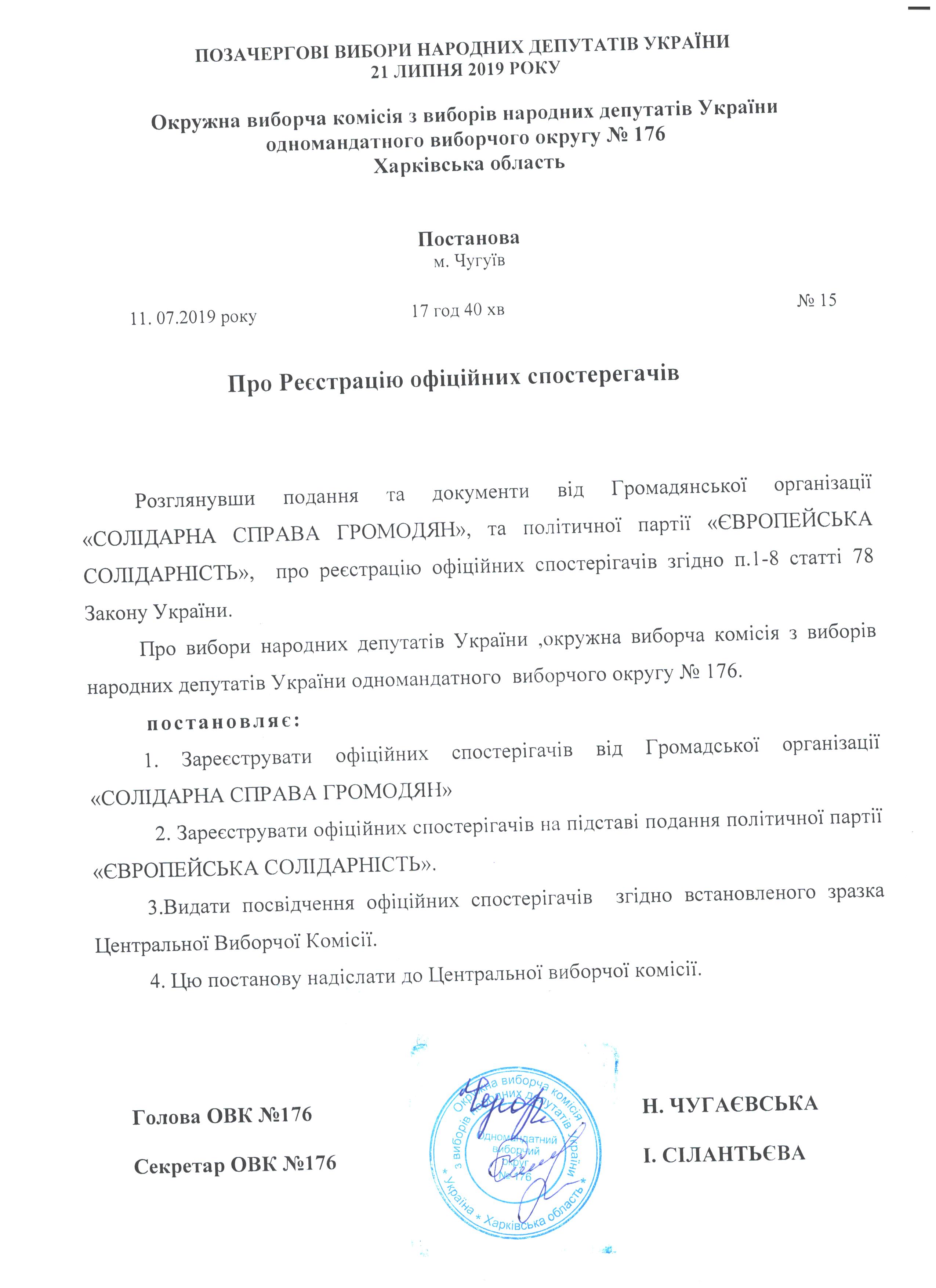 Про реєстрацію офіційних спостерігачів |