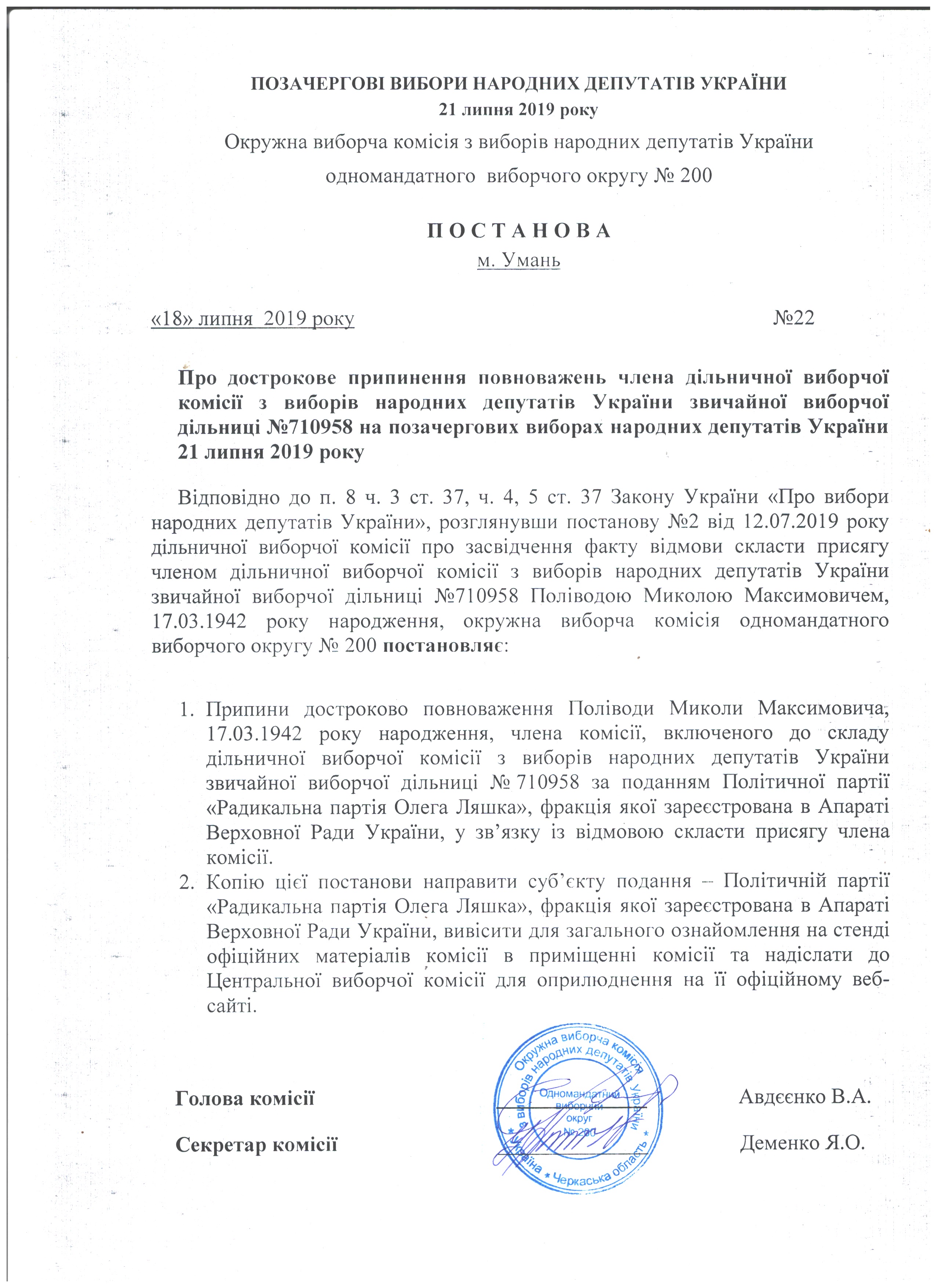 | 22 від 18.07.2019 |