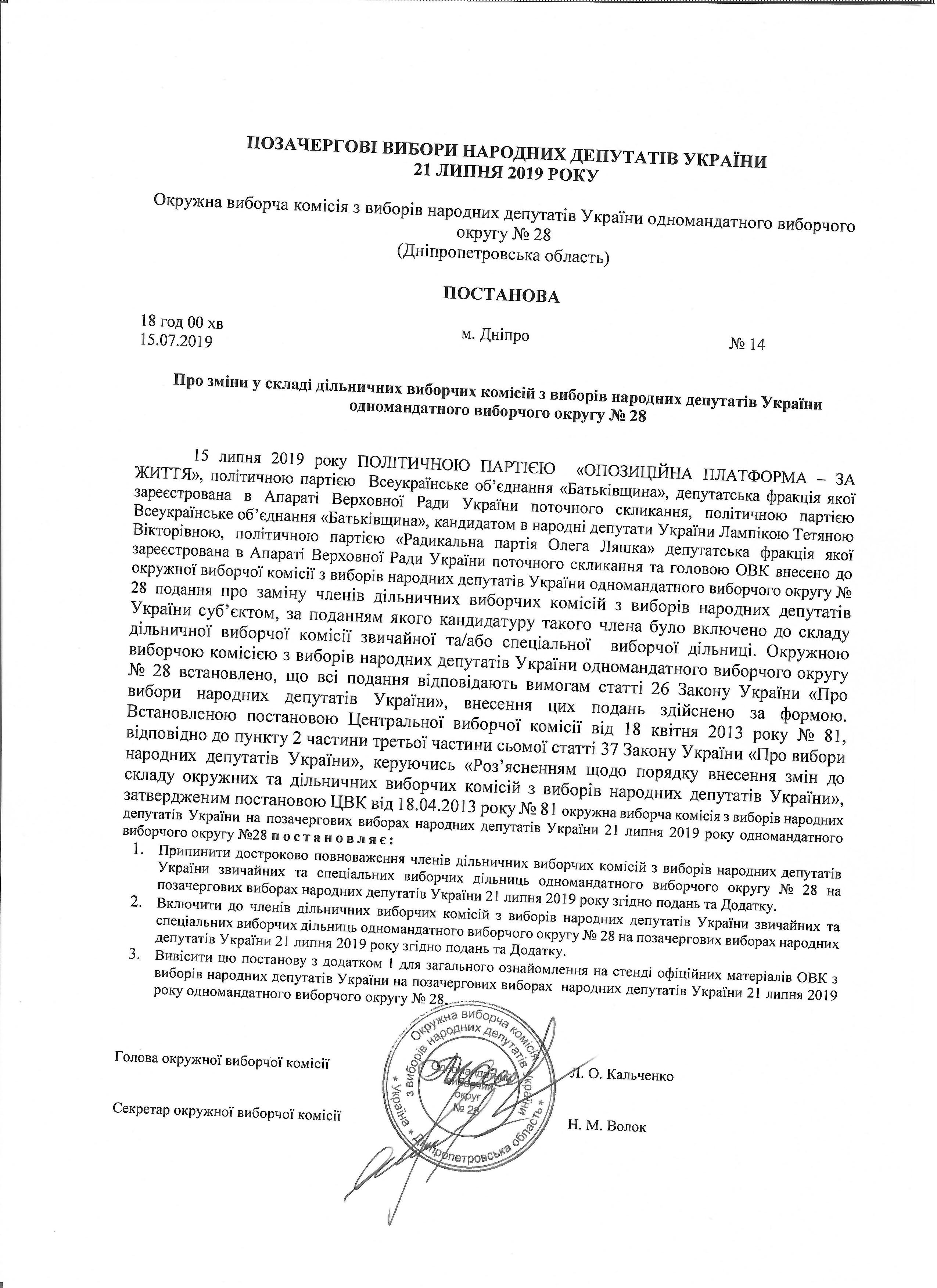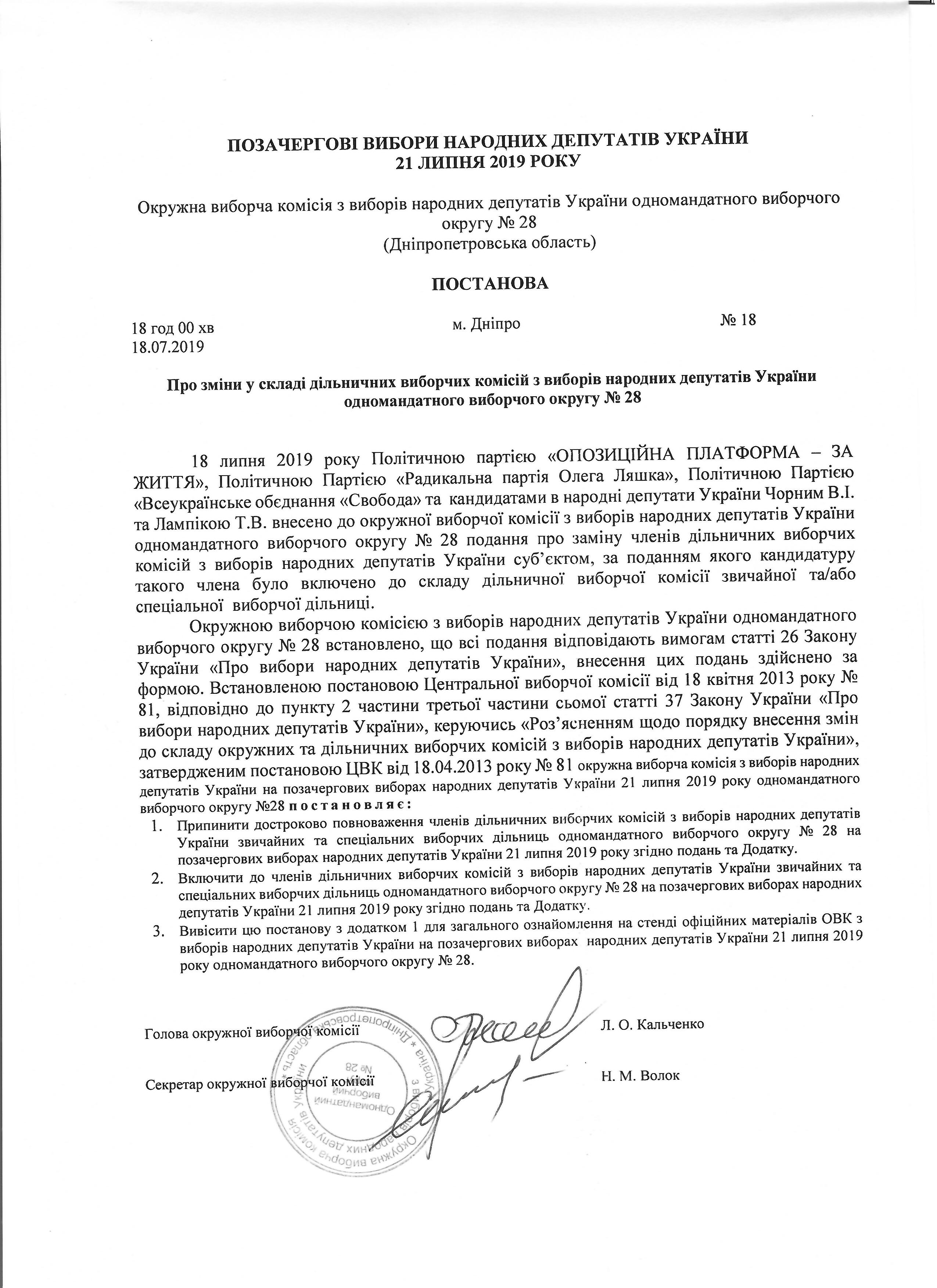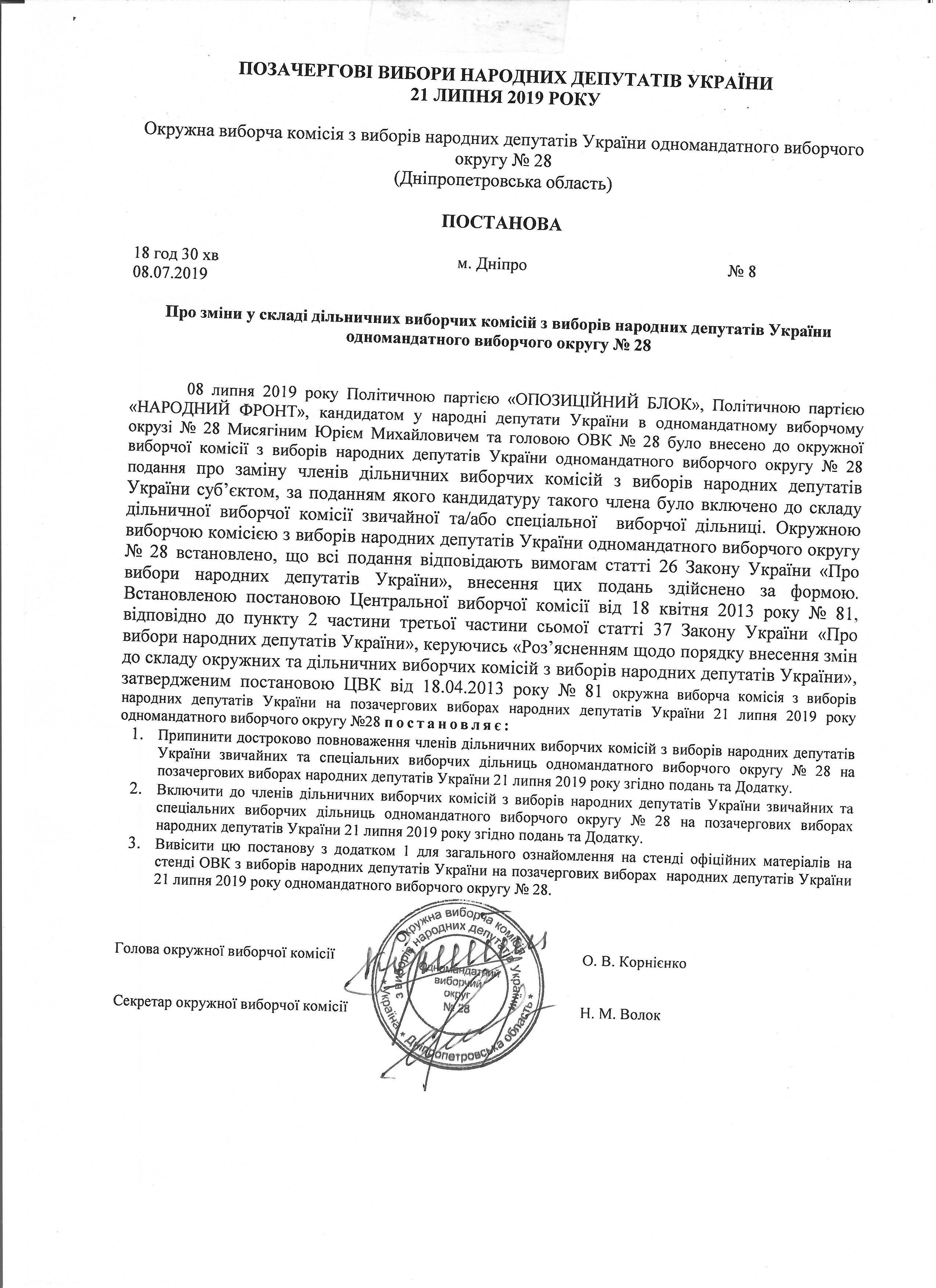 Про зміни у складі дільничних виборчих комісій з виборів народних депутатів України одномандатного виборчого округу № 28 |