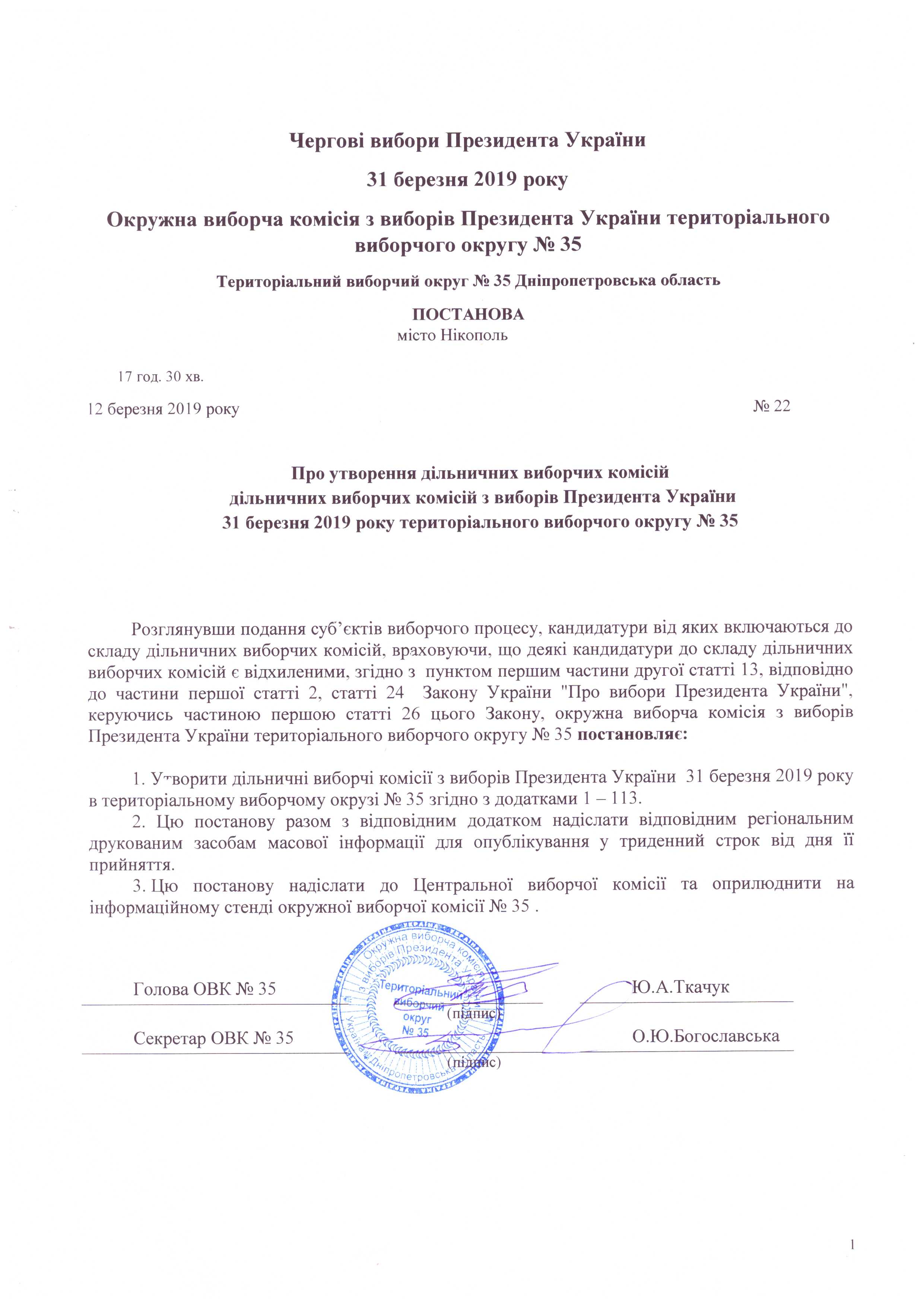 Про утворення дільничних виборчіх комісій з виборів Президента України 31 березня 2019 року територіального виборчого округу №35 |