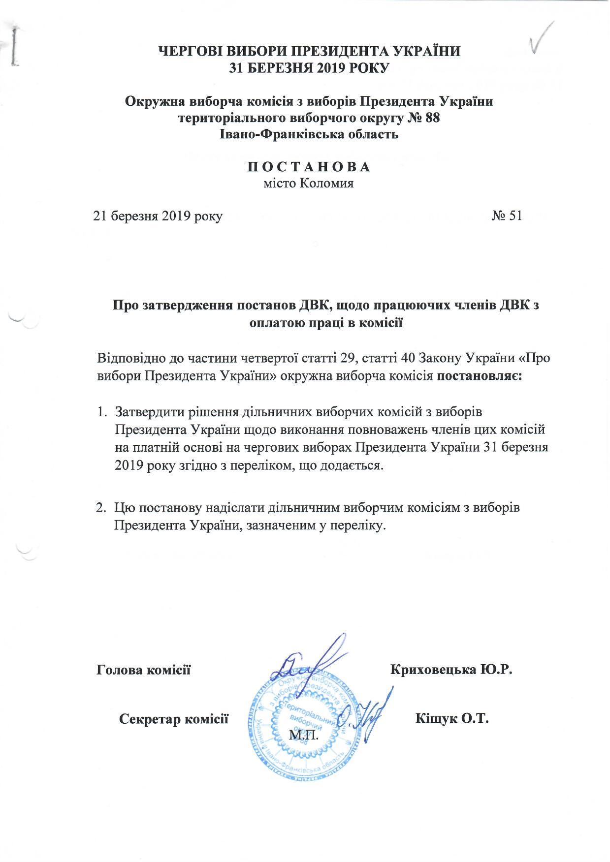 Про виконання членами ОВК з виборів Президента України ТВО № 88 своїх повноважень на платній основі |