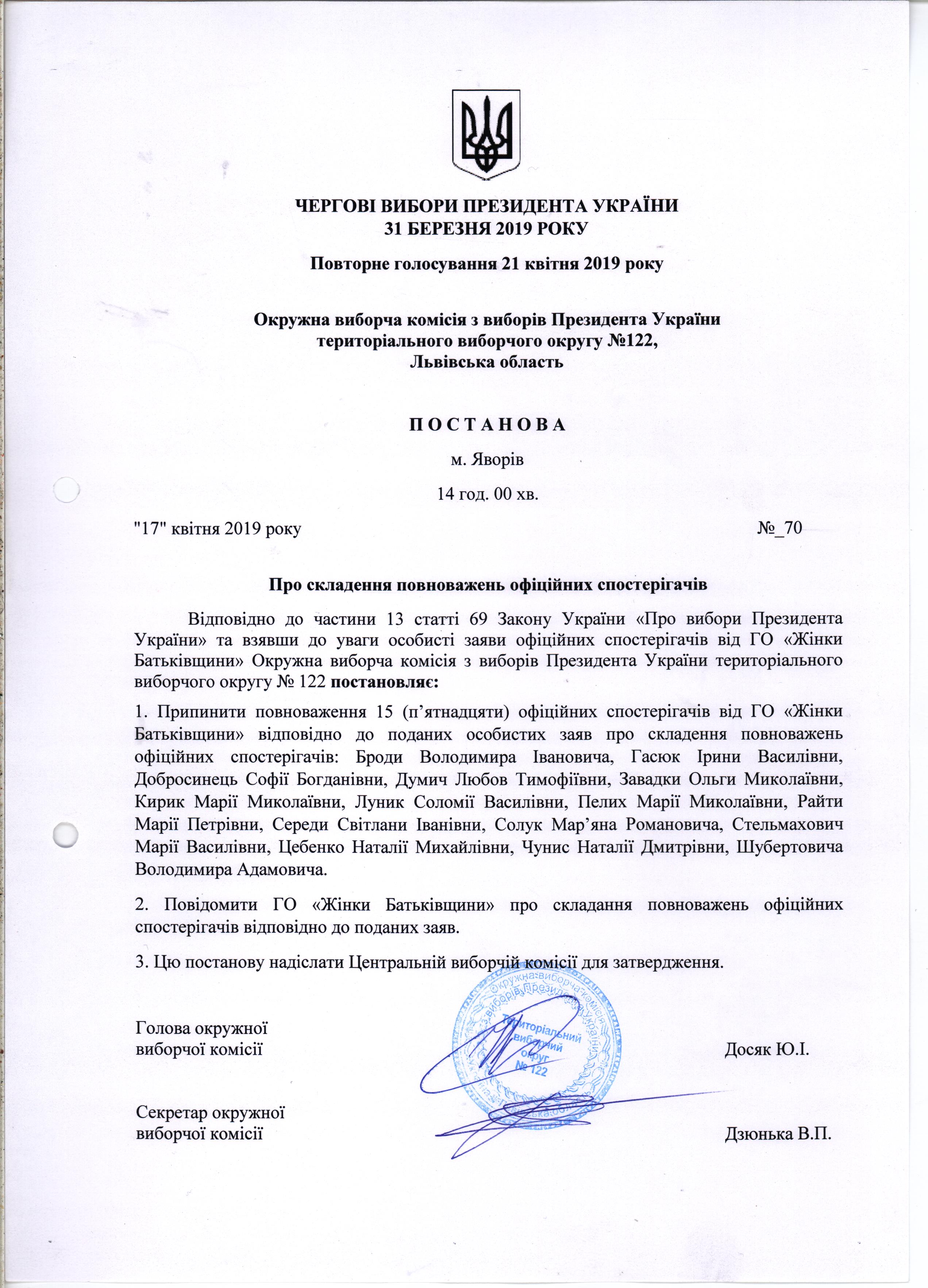 про кратне включення членів ДВК з виборів Президента України 31 березня 2019року ТВО №122 |