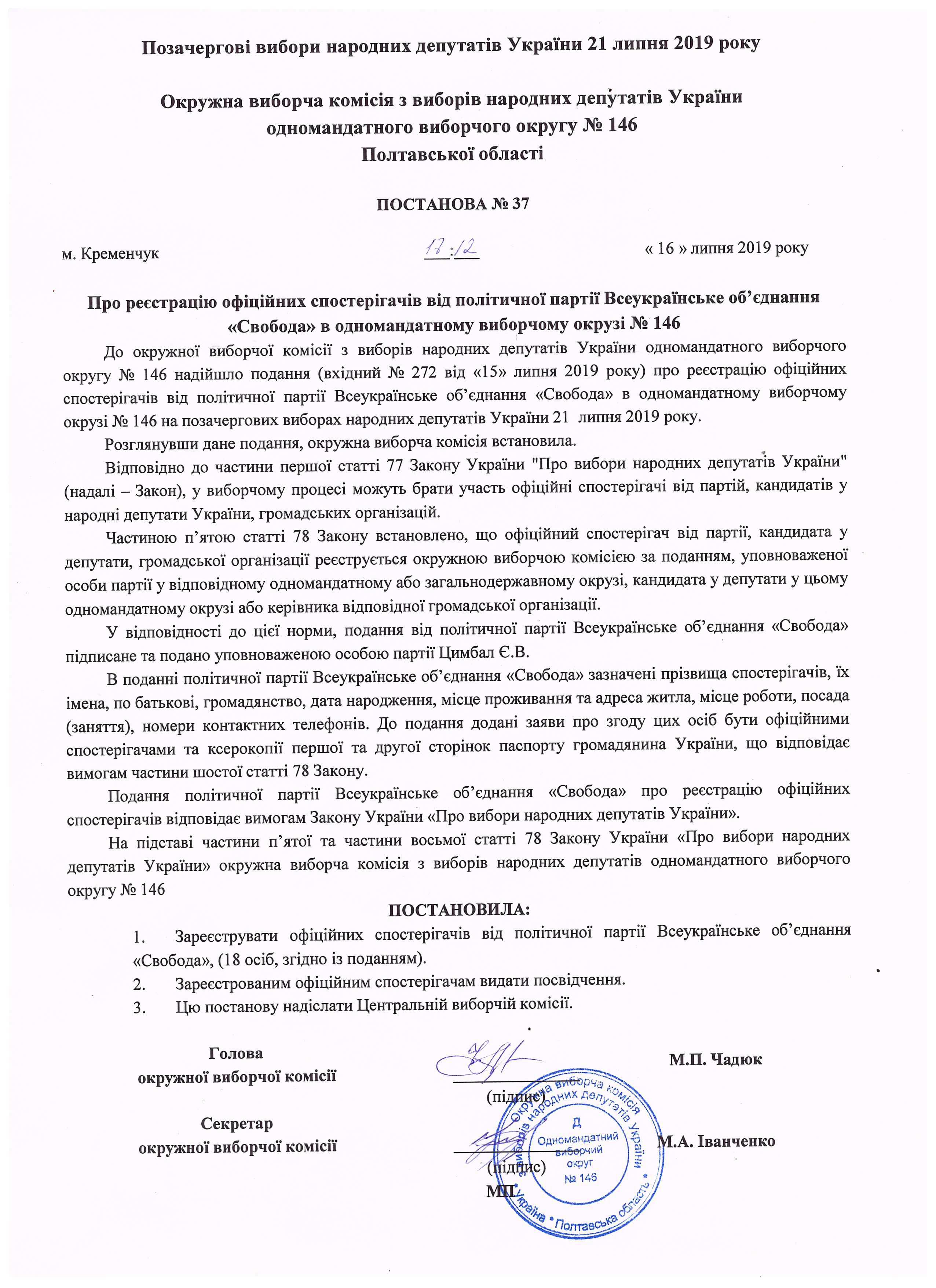 | 37 від 16.07.2019 |