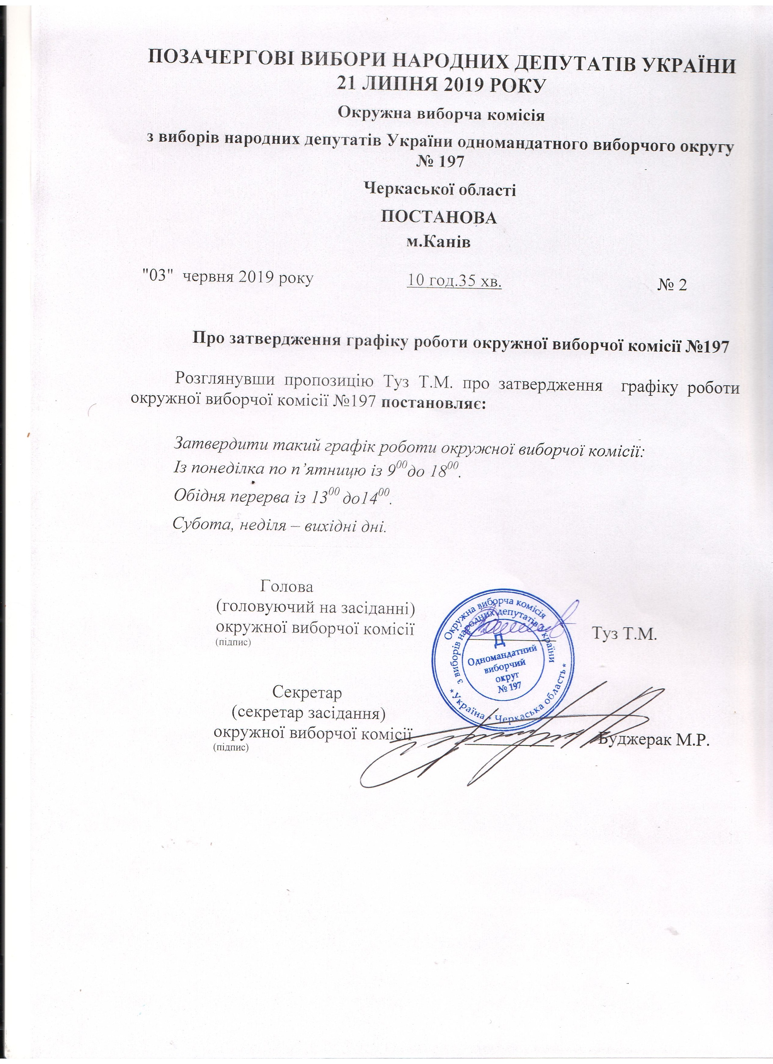 Про проведення жеребкування щодо включення кандидатур до складу дільничних виборчих комісій з виборів народних депутатів України на позачергових виборах народних депутатів України 21 липня 2019 року одномандатного виборчого округу №197 |