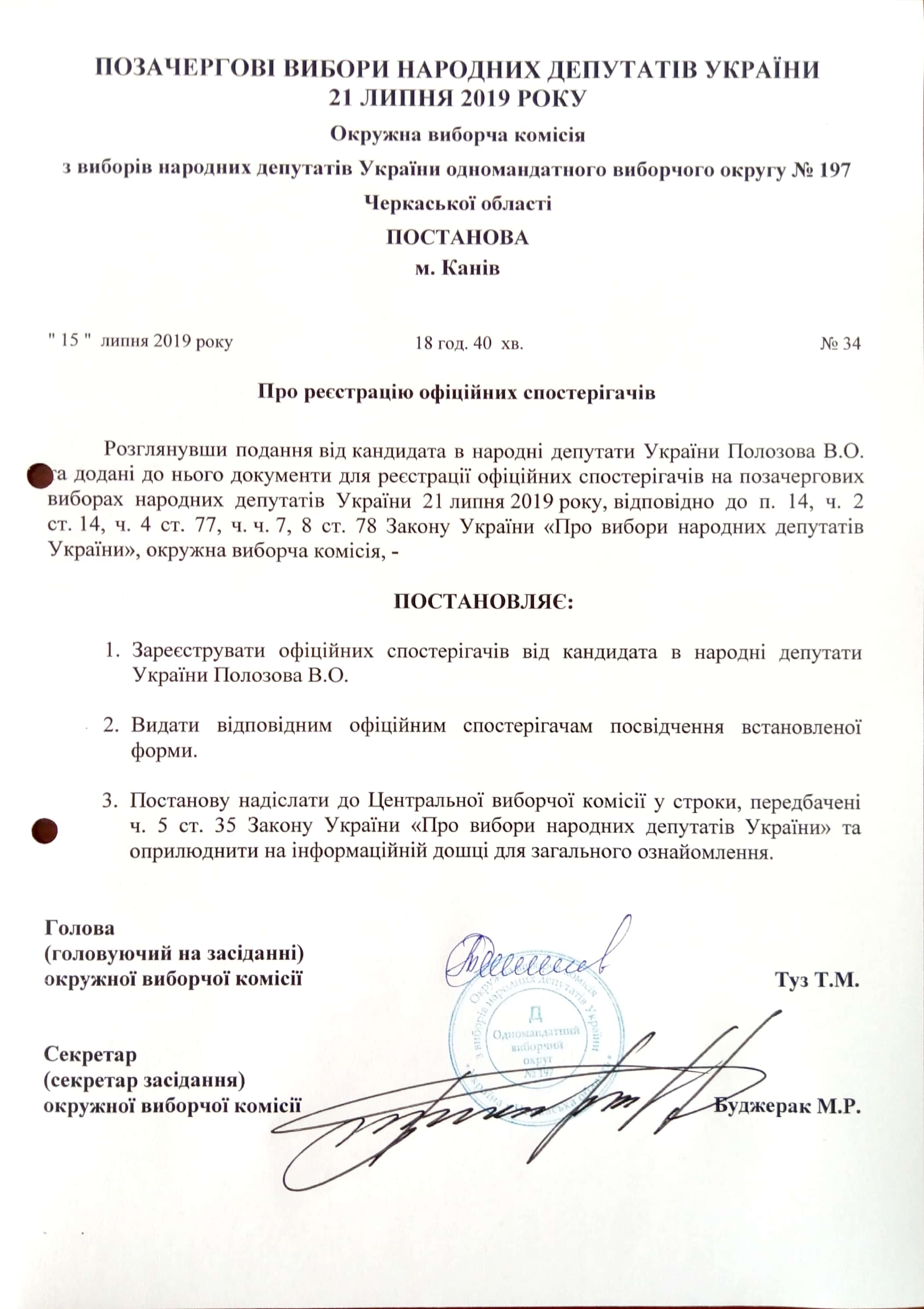 Про реєстрацію подань щодо кандидатур до складу ДВК на позачергових виборах народних депутатів України 21 липня 2019 року |