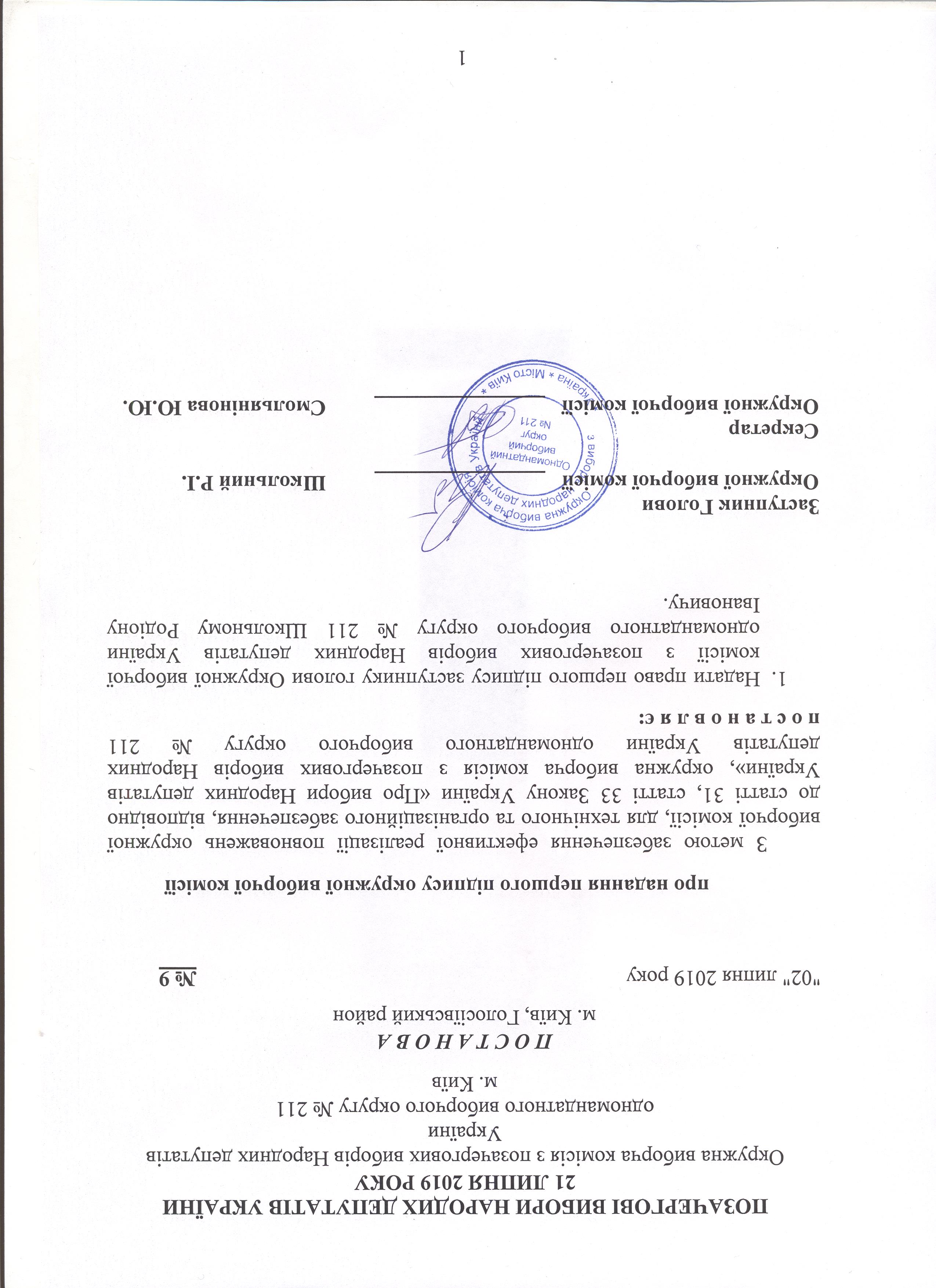 Про систематичне невиконання своїх обов'язків головою окружної виборчої комісії одномандатного виборчого округу № 211 |