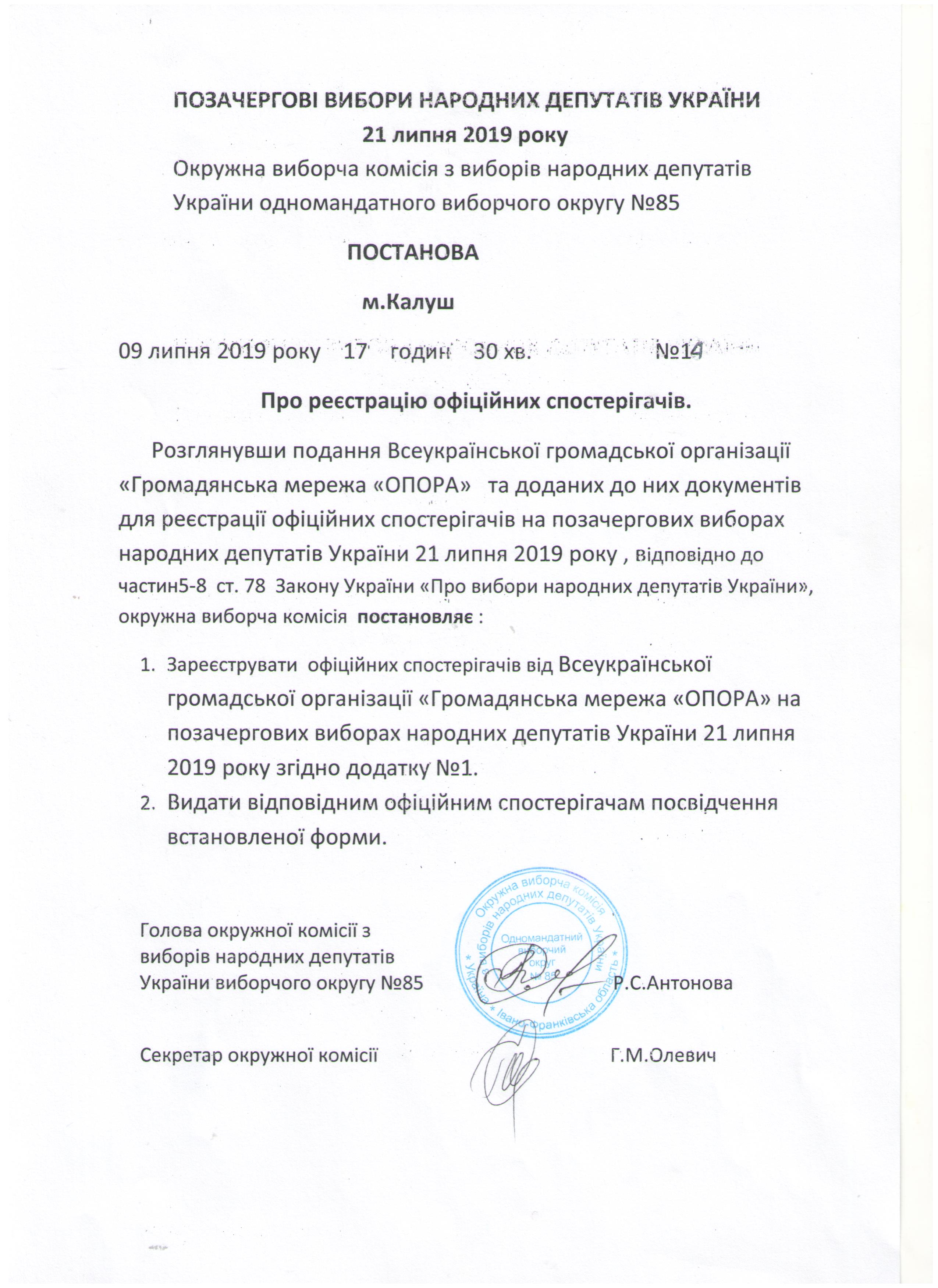 Про реєстрацію офіційних спостерігачів |
