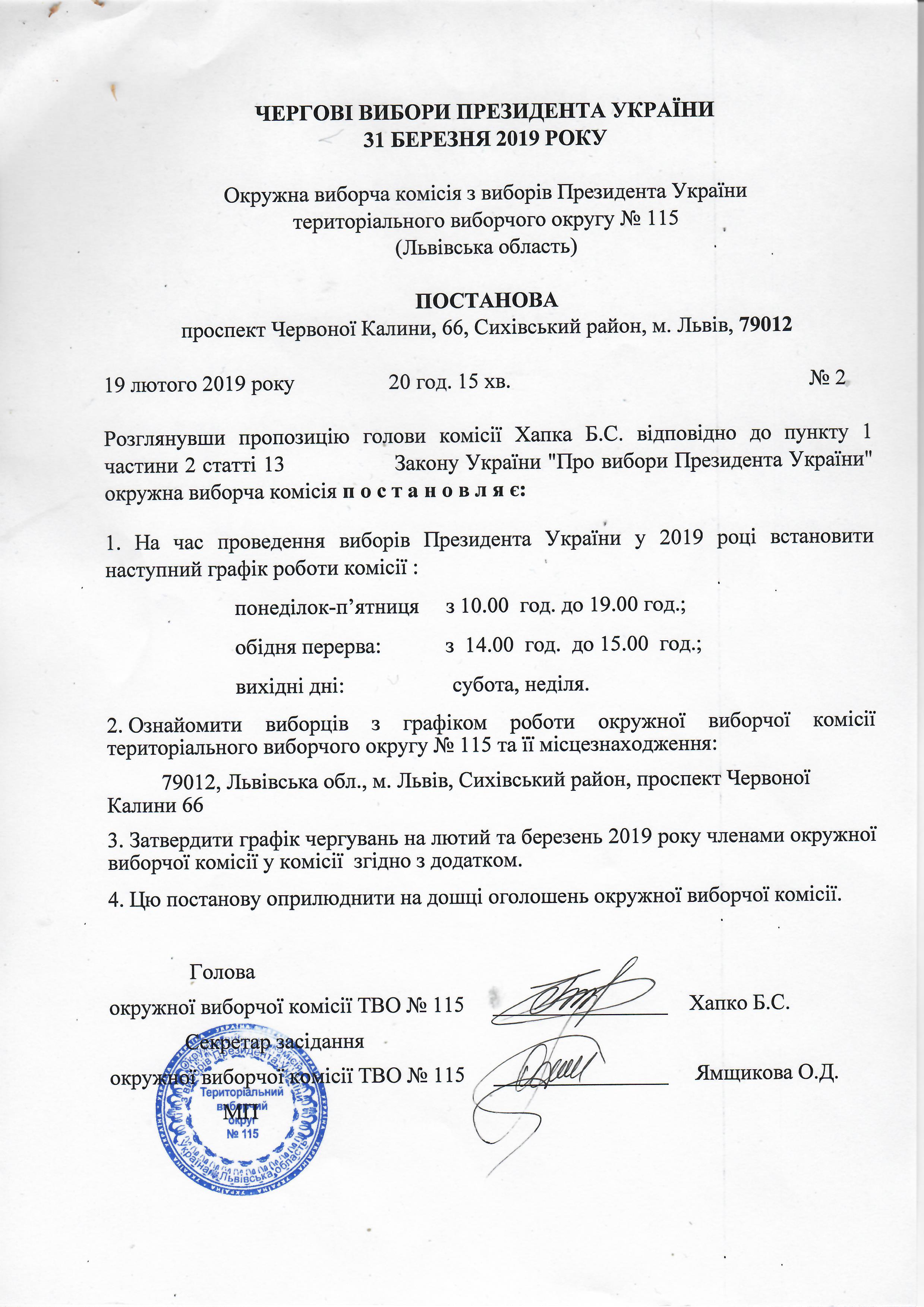 Постанова про графік роботи комісії |