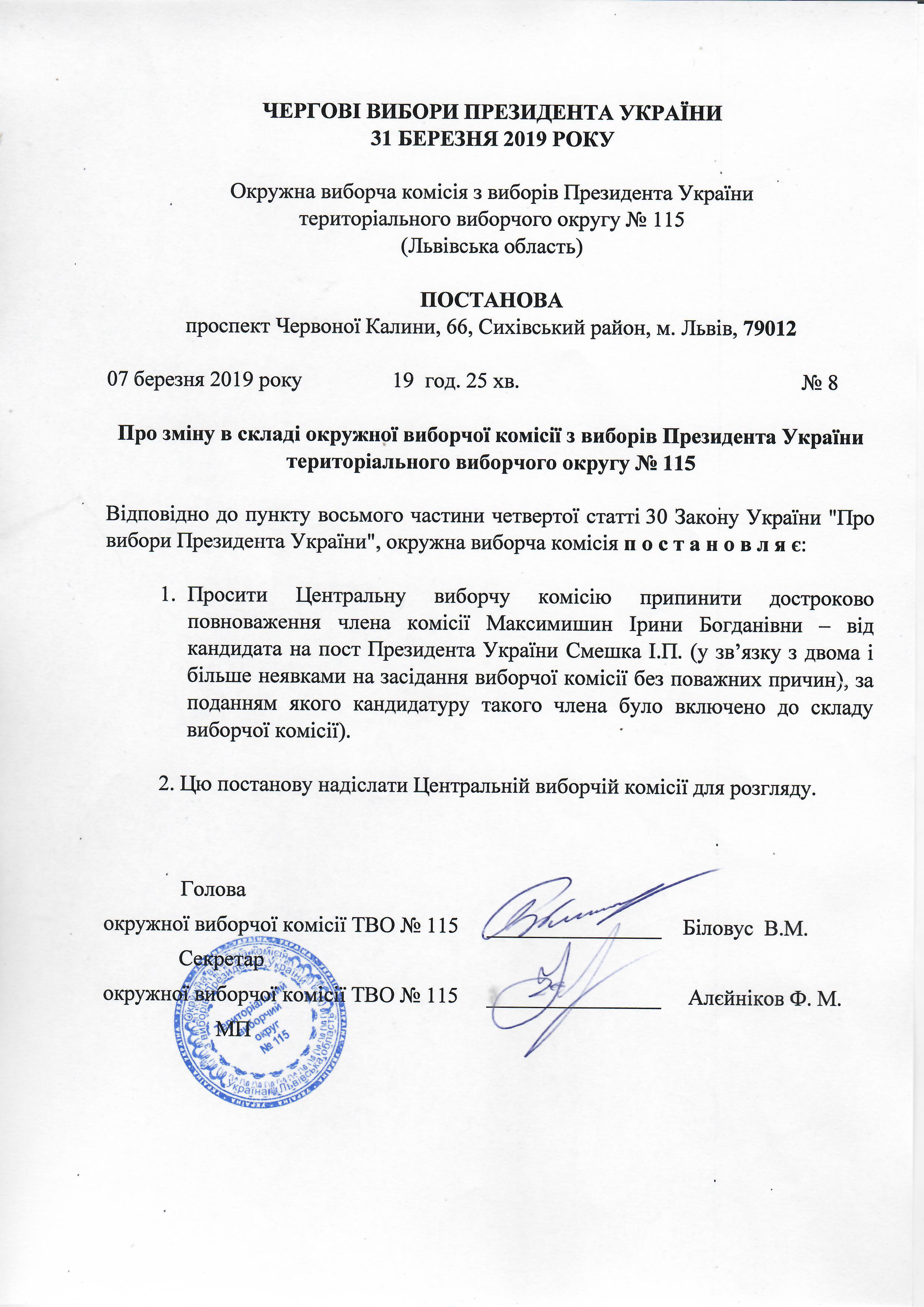 Про зміну в складі ОВК № 115 |