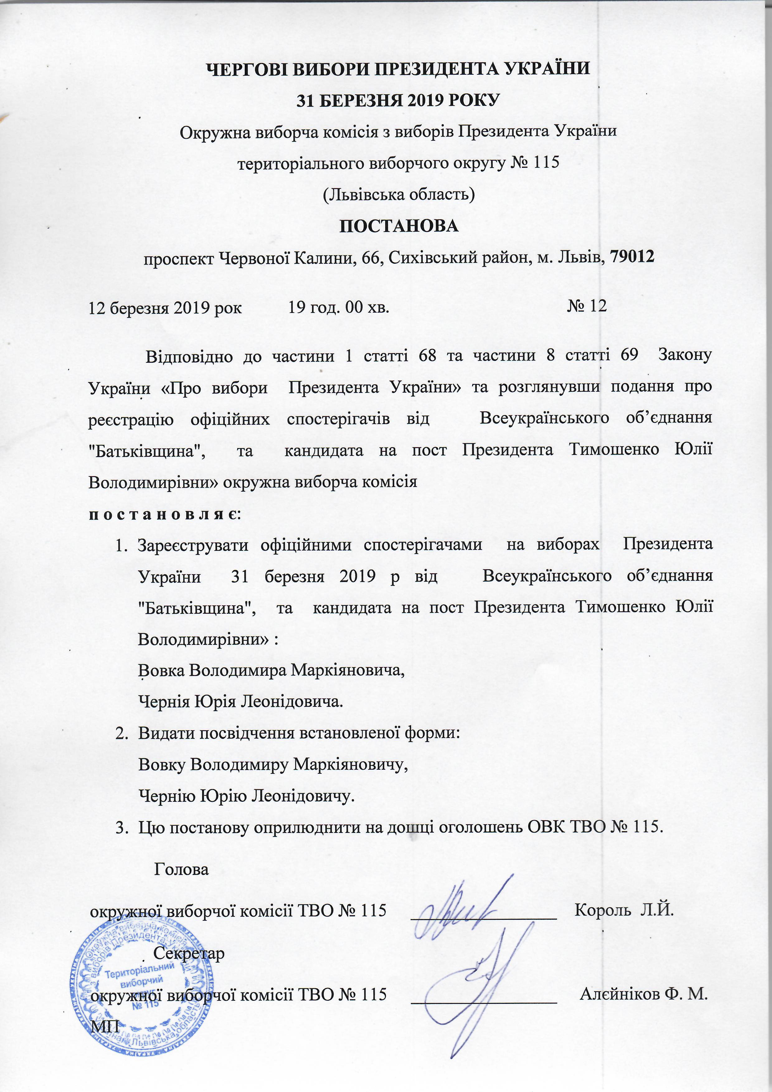 Постанова ОВК |