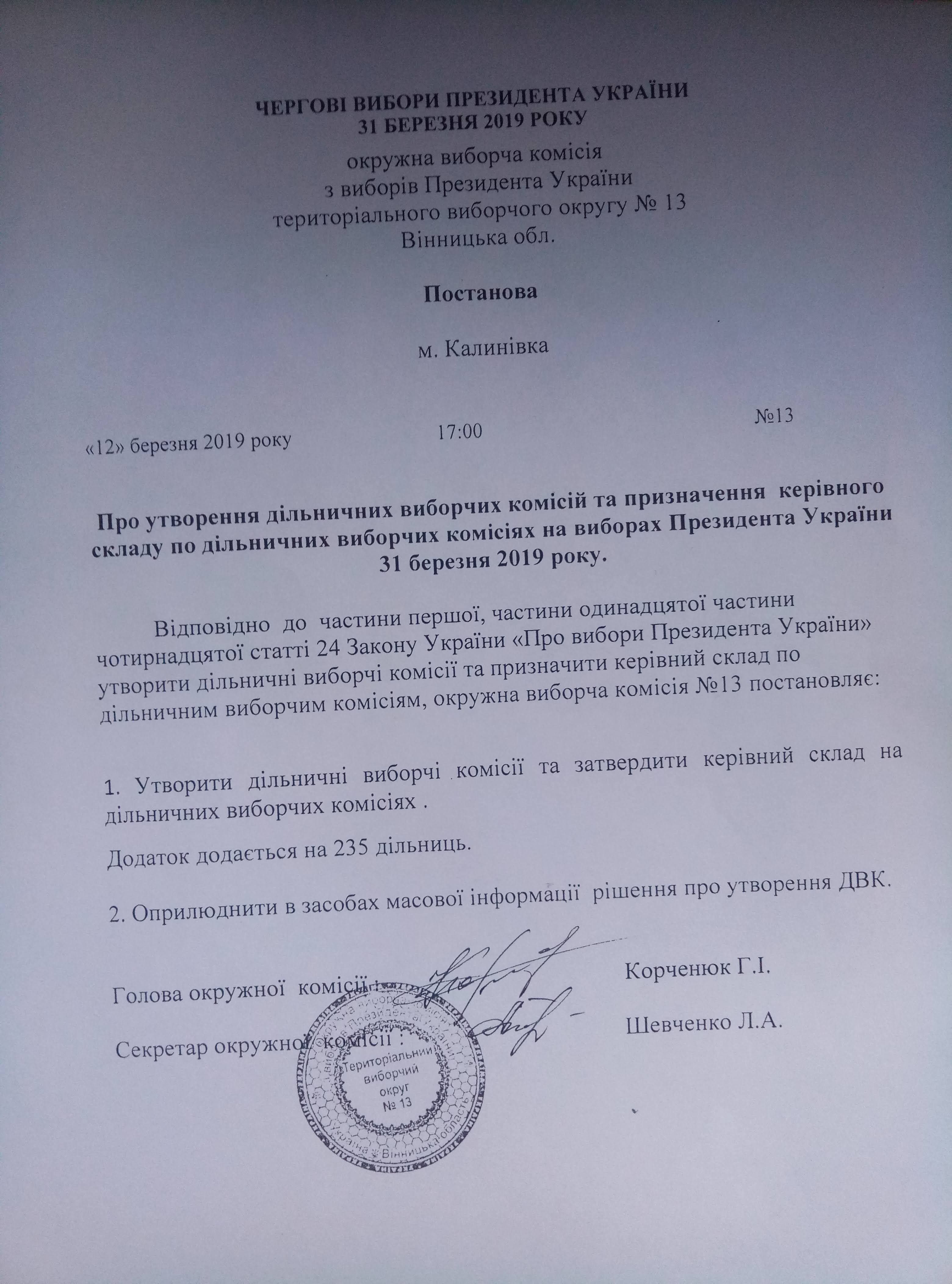 | 13 від 12.03.2019 |
