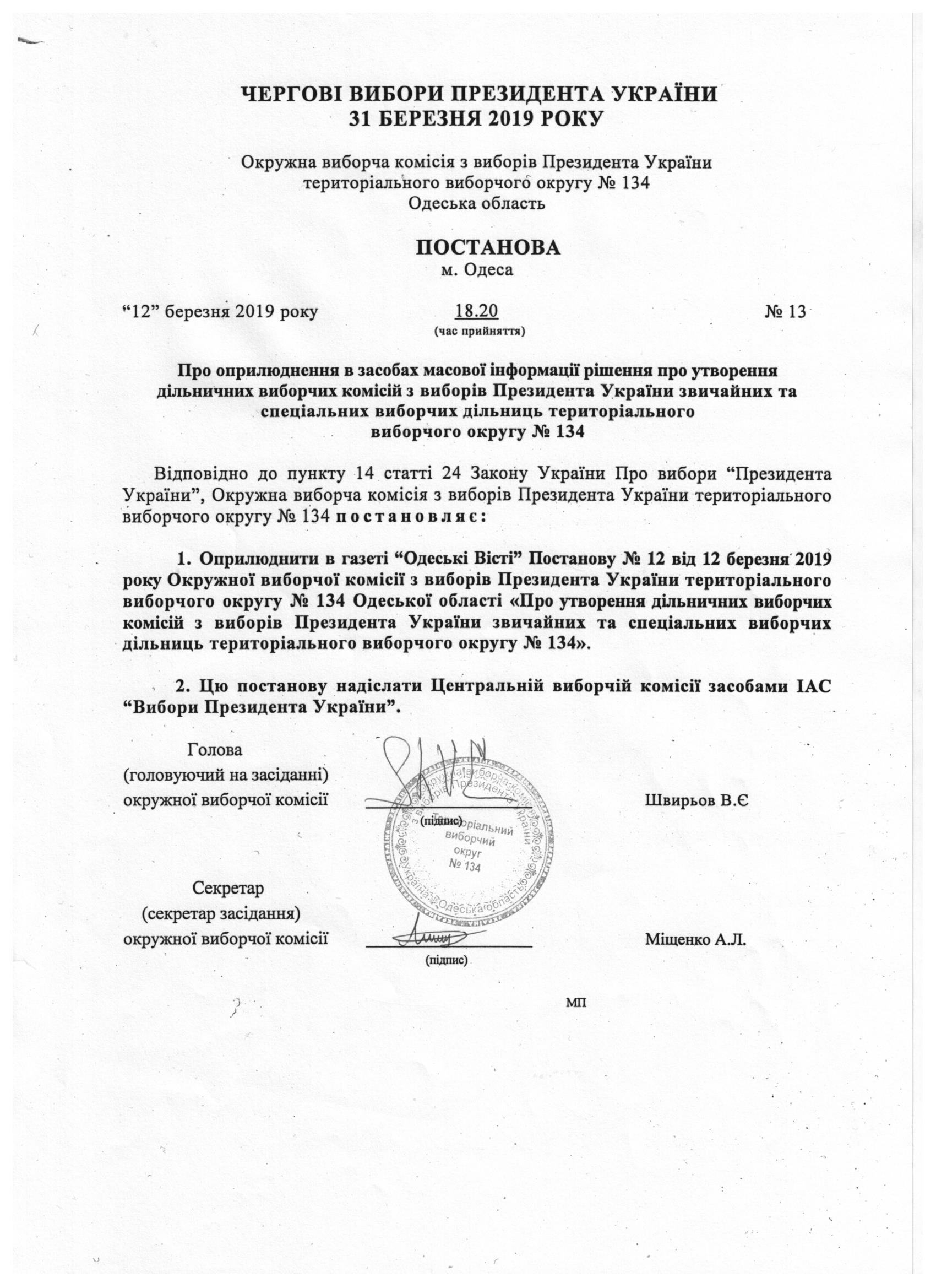 | 13 від 12.03.2019 |
