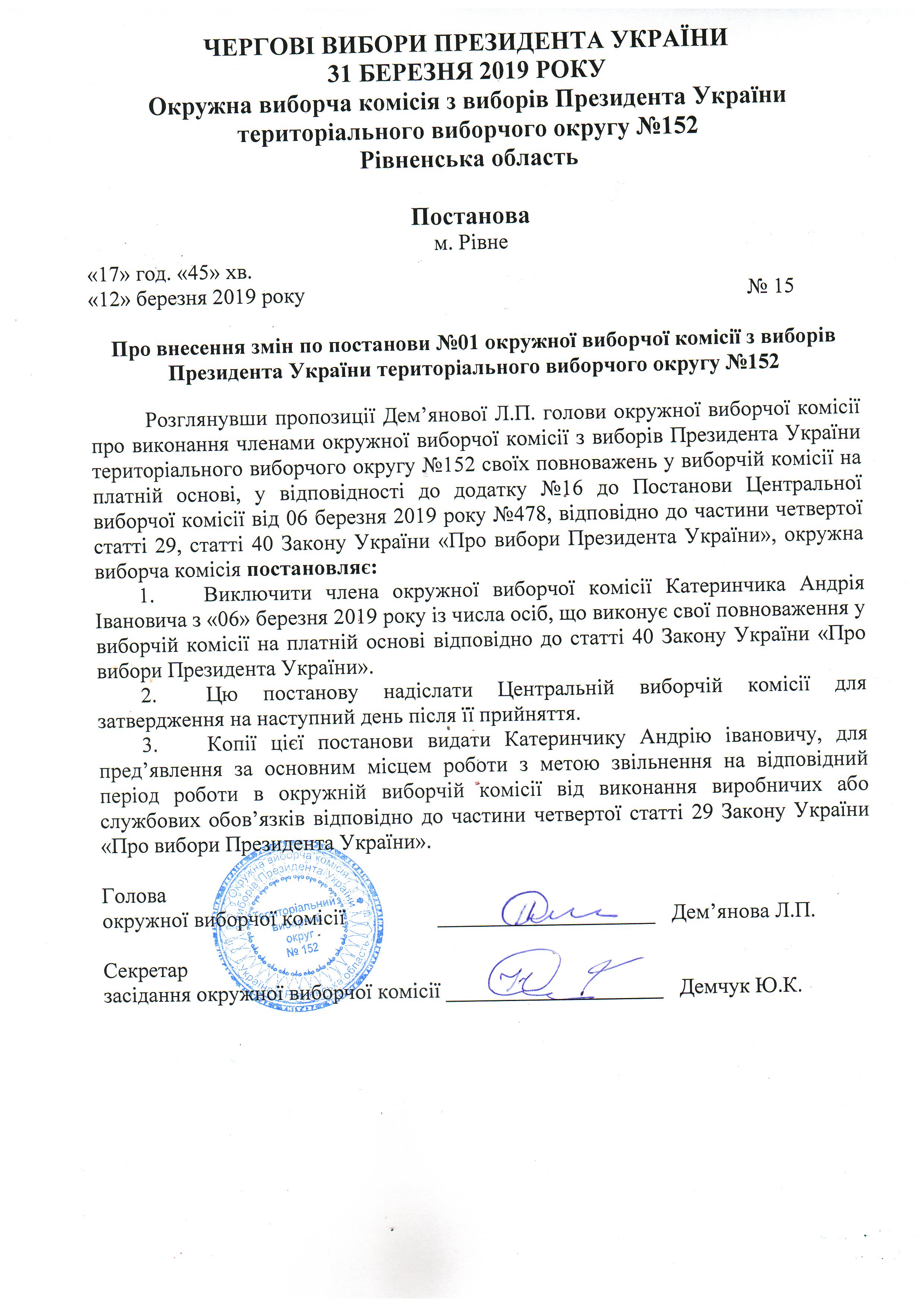 | 15 від 12.03.2019 |