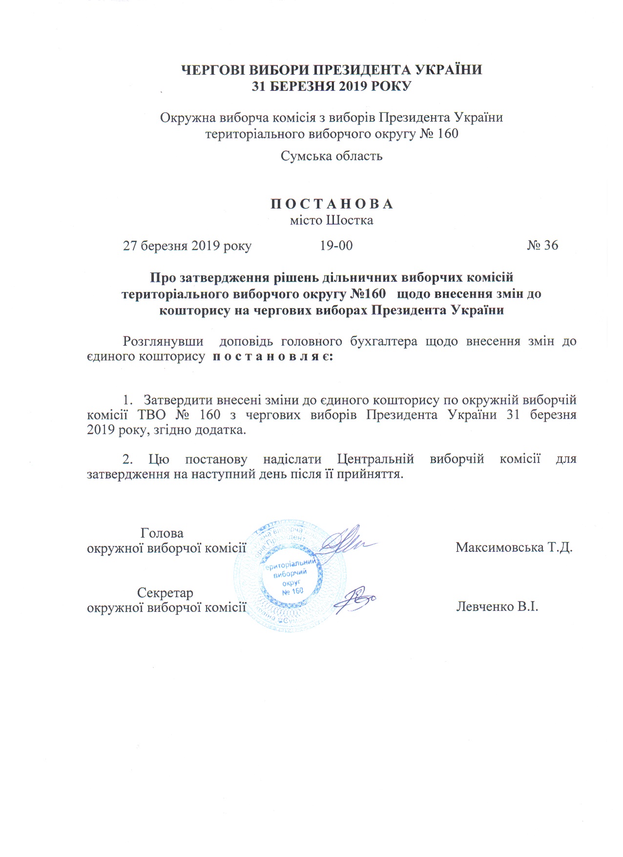 Про затверждення рішень дільничних виборчих комісій ТВО №160 щодо внесення змін до кошторису на чергових виборах Президента України |