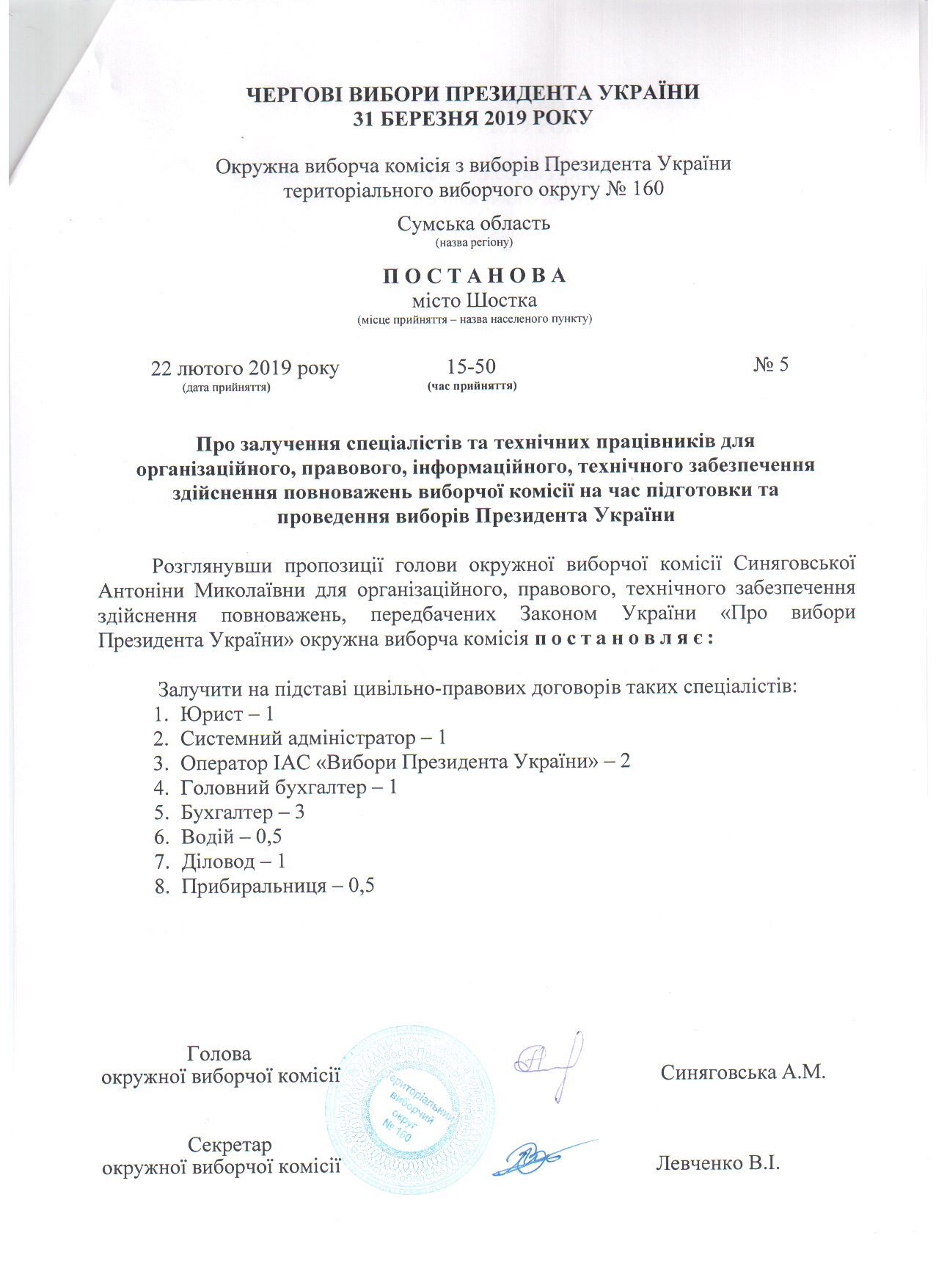 Про залучення спеціалістів та технічних працівників для організаційного, правового, інформаційного, технічного забезпечення здійснення повноважень виборчої комісії на час підготовки та проведення виборів Президента України |