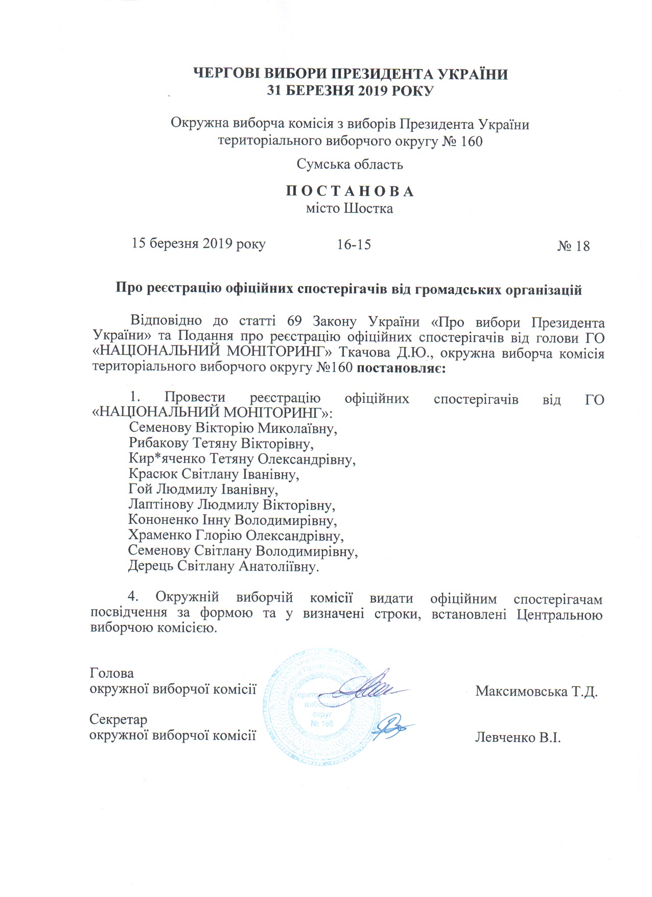 Про реєстрацію офіційних спостерігачів від громадських організацій |