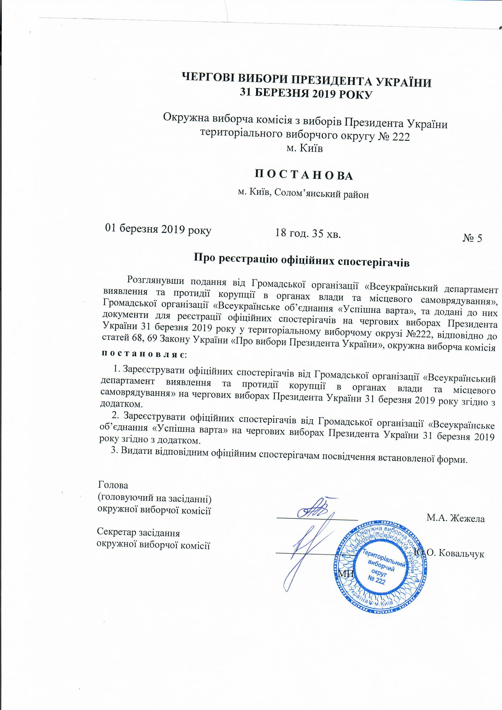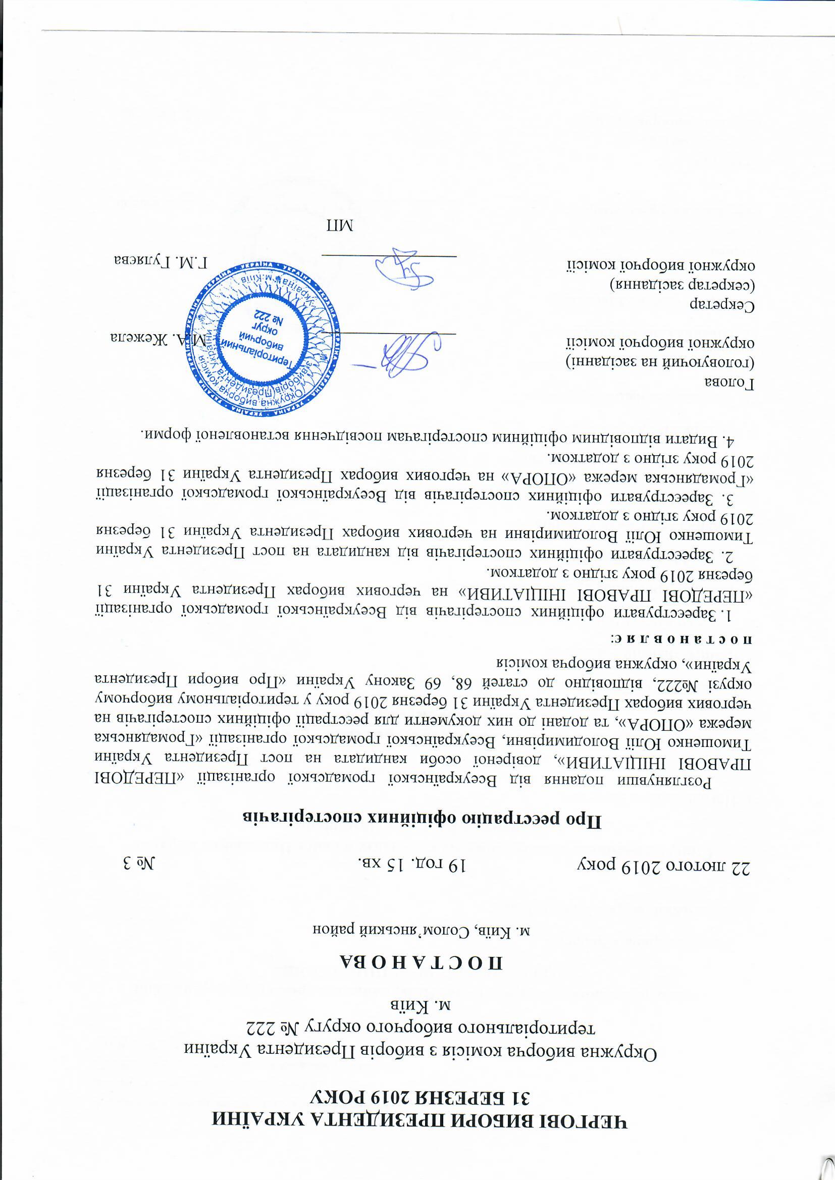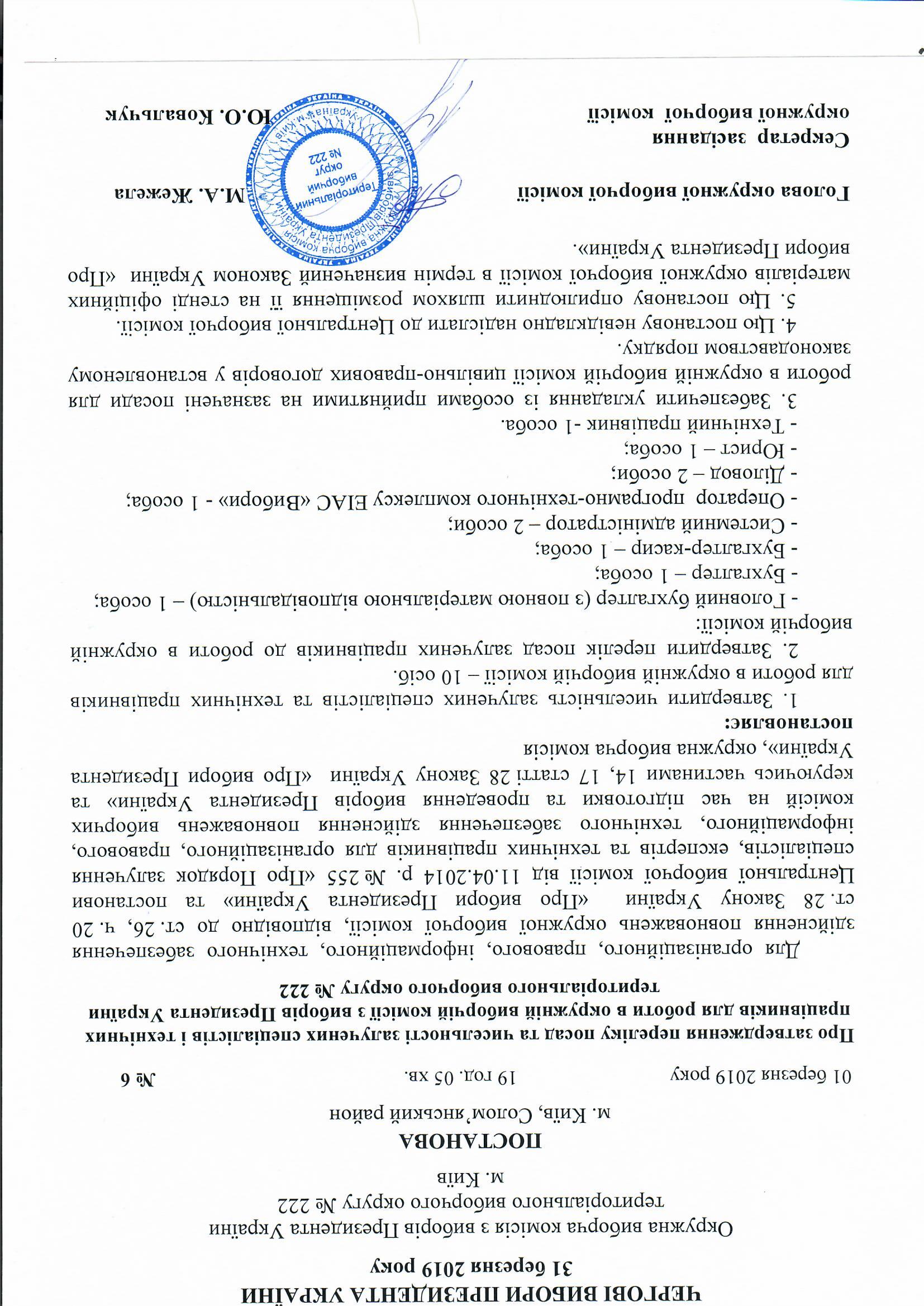 Постанова про заміну членів ДВК на території ОВК №222 |