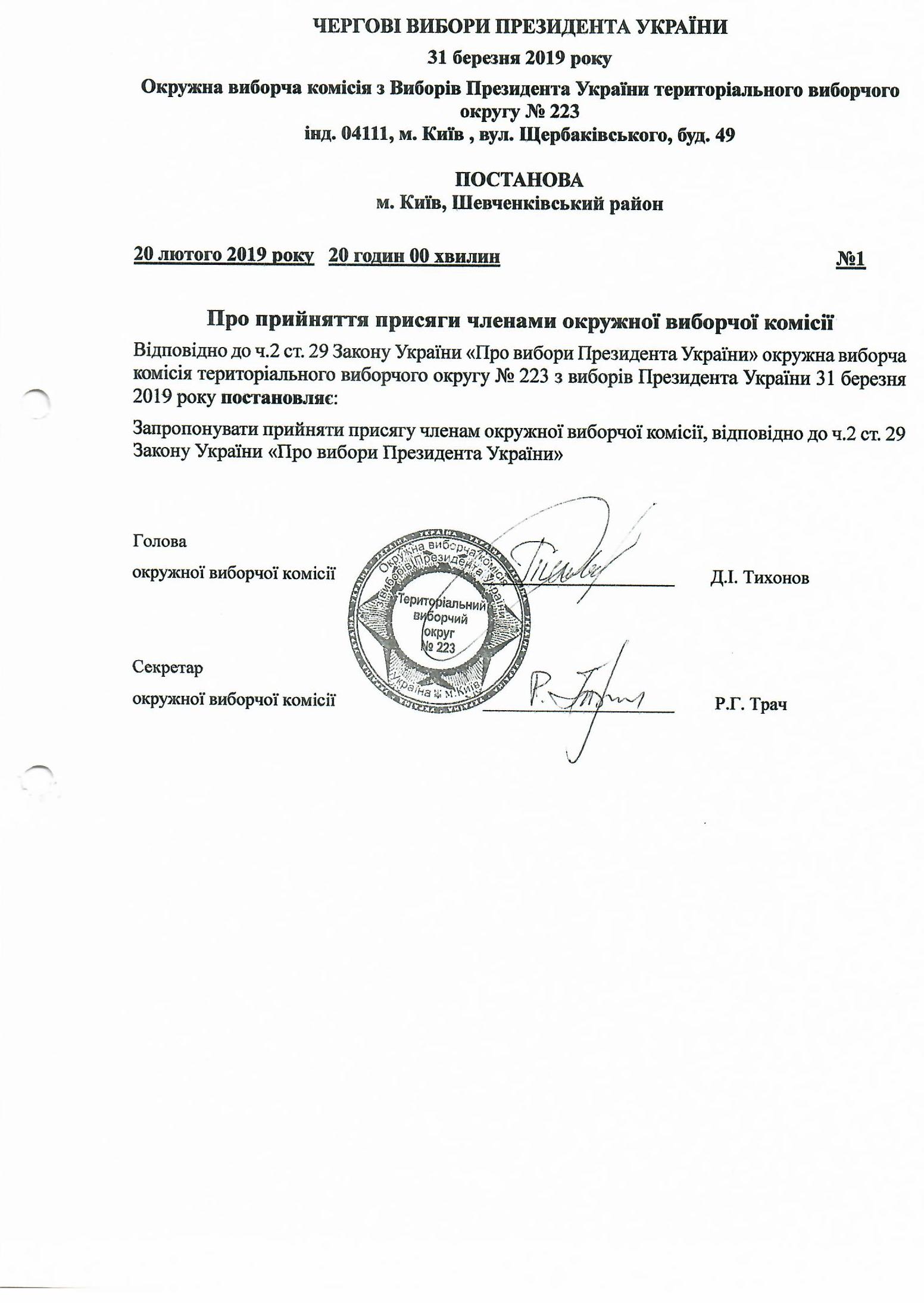 Про прийняття присяги членами окружної виборчої комісії |