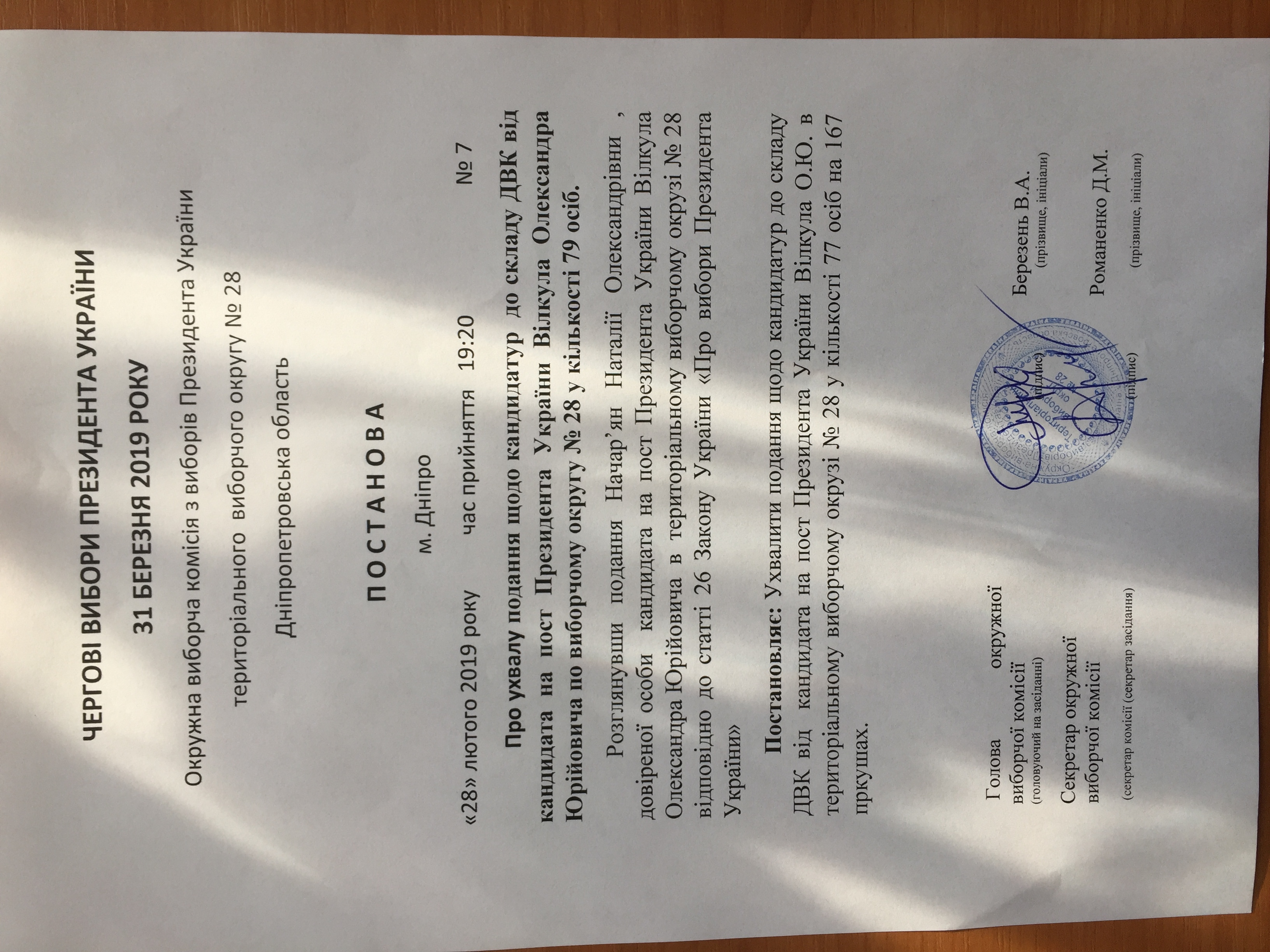 Про ухвалу подання щодо кандидатур до складу ДВК від кандидата на пост Президента України Вілкула Олександра Юрійовича по виборчому округу № 28 у кількості 79 осіб |