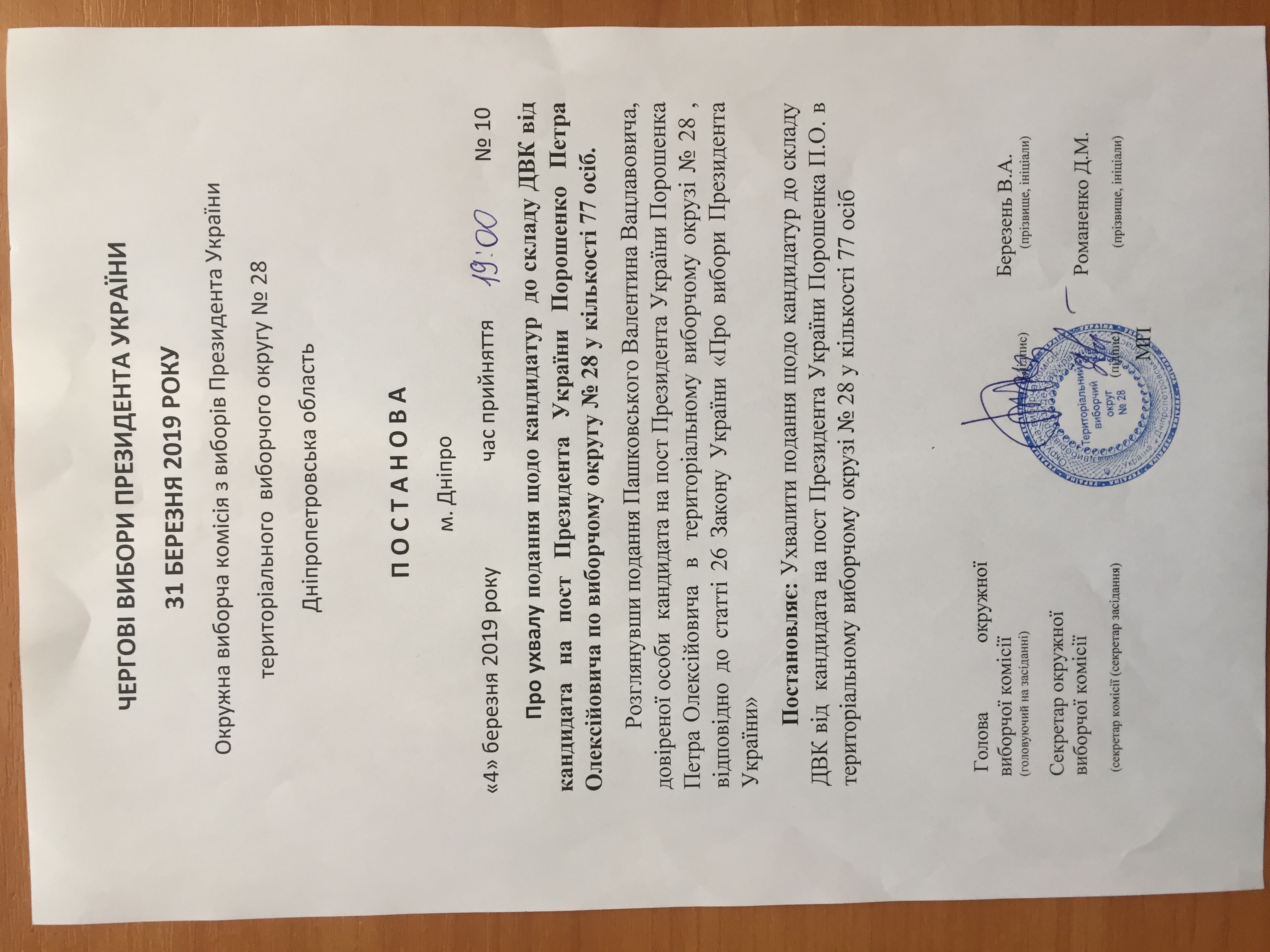 Про ухвалу подання щодо кандидатур до складу ДВК від кандидата на пост Президента України Порошенка Петра Олексійовича по виборчому округу № 28 у кількості 77 осіб |