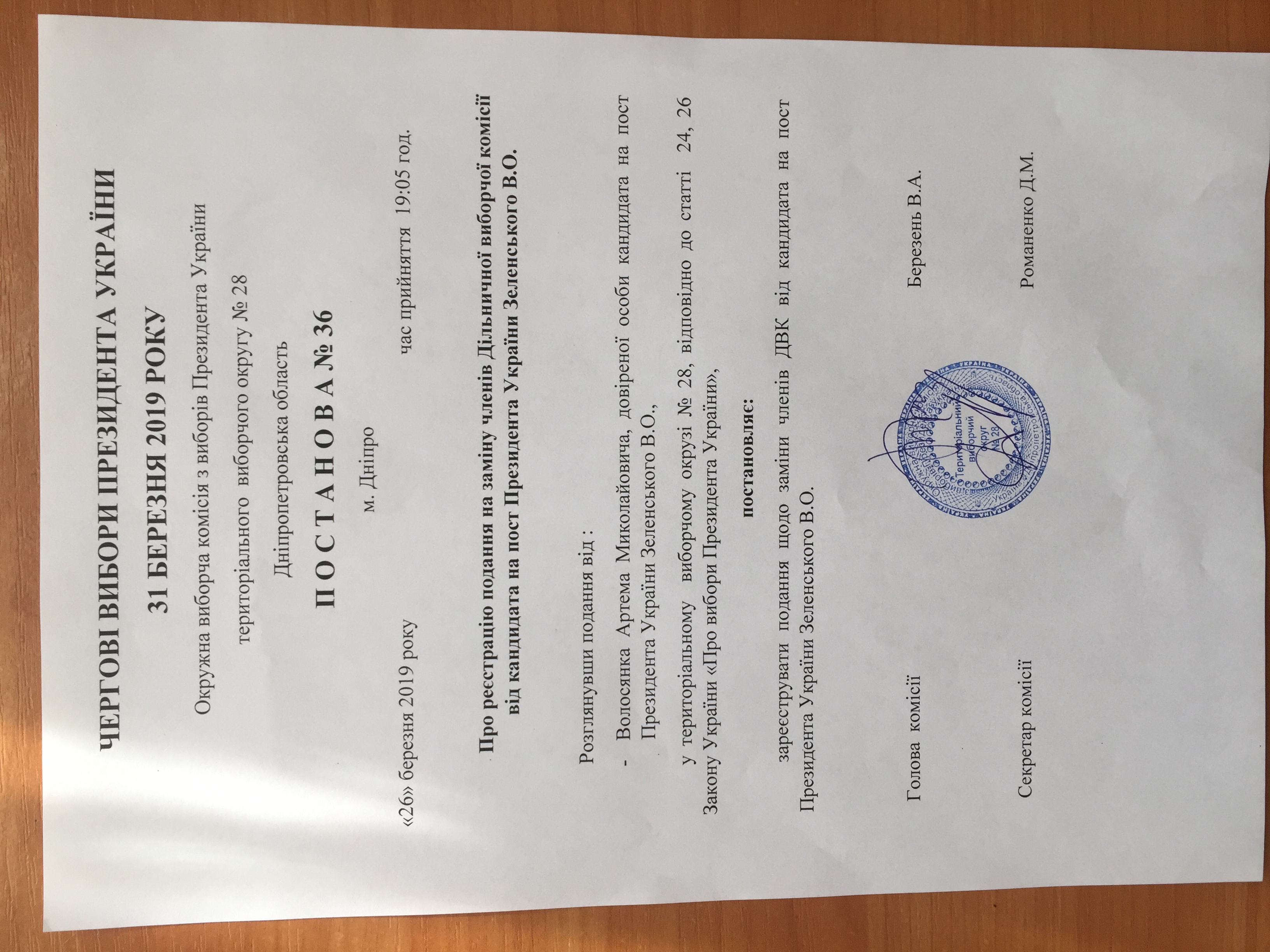 Про реєстрацію подання на заміну членів дільничної виборчої комісії від кандидата на пост Президента України Зеленського В.О. |