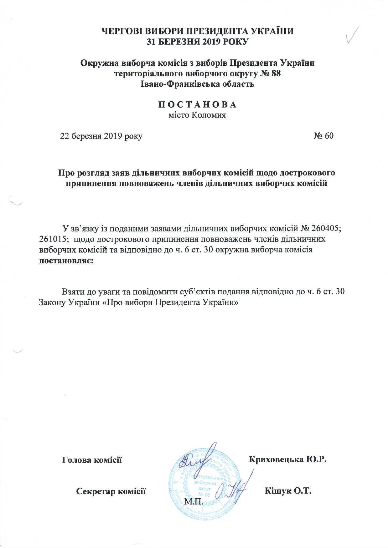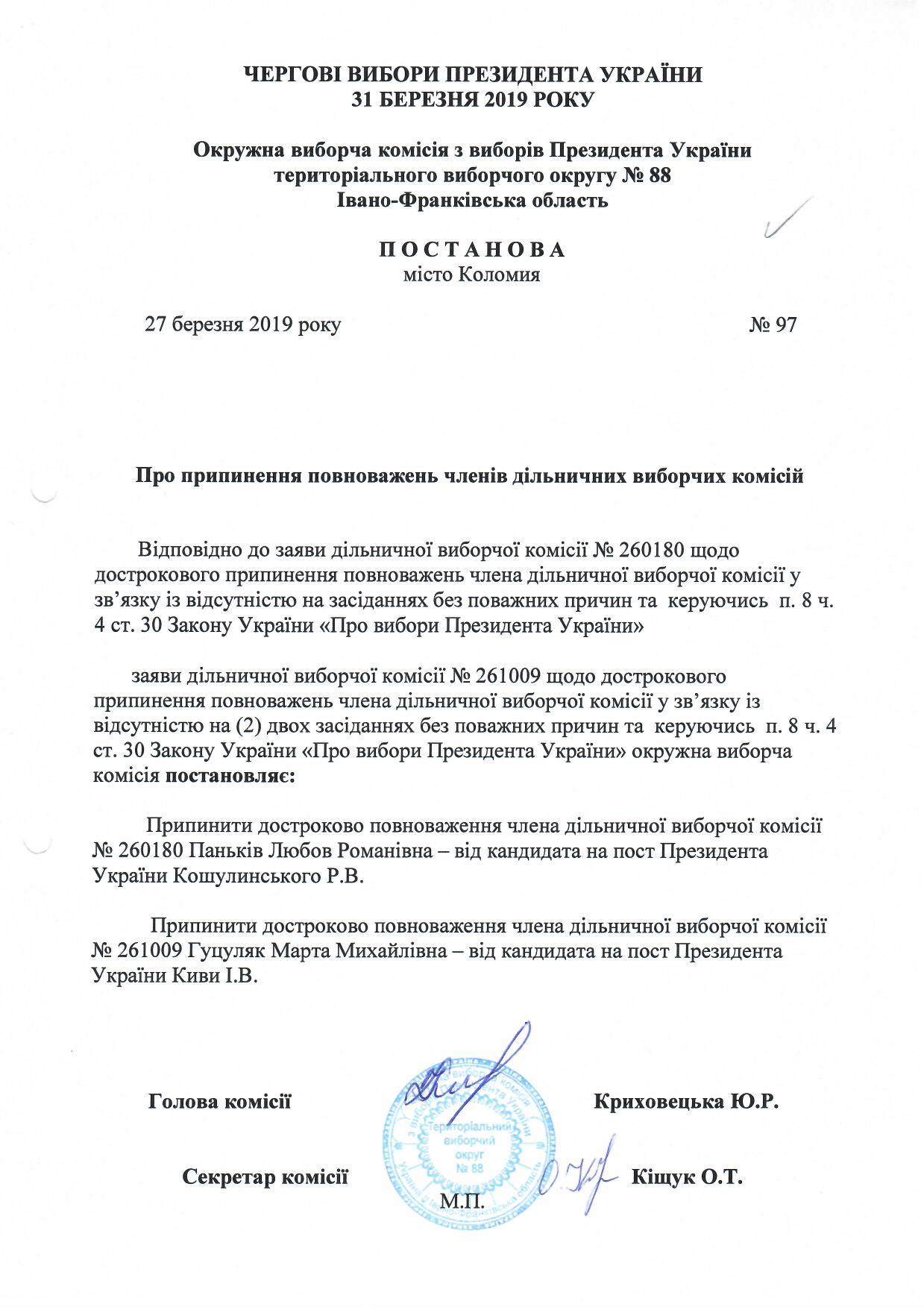 Про розгляд заяв дільничих виборчих комісій щодо дострокового припинення повноважень членів дільничих виборчих комісій |