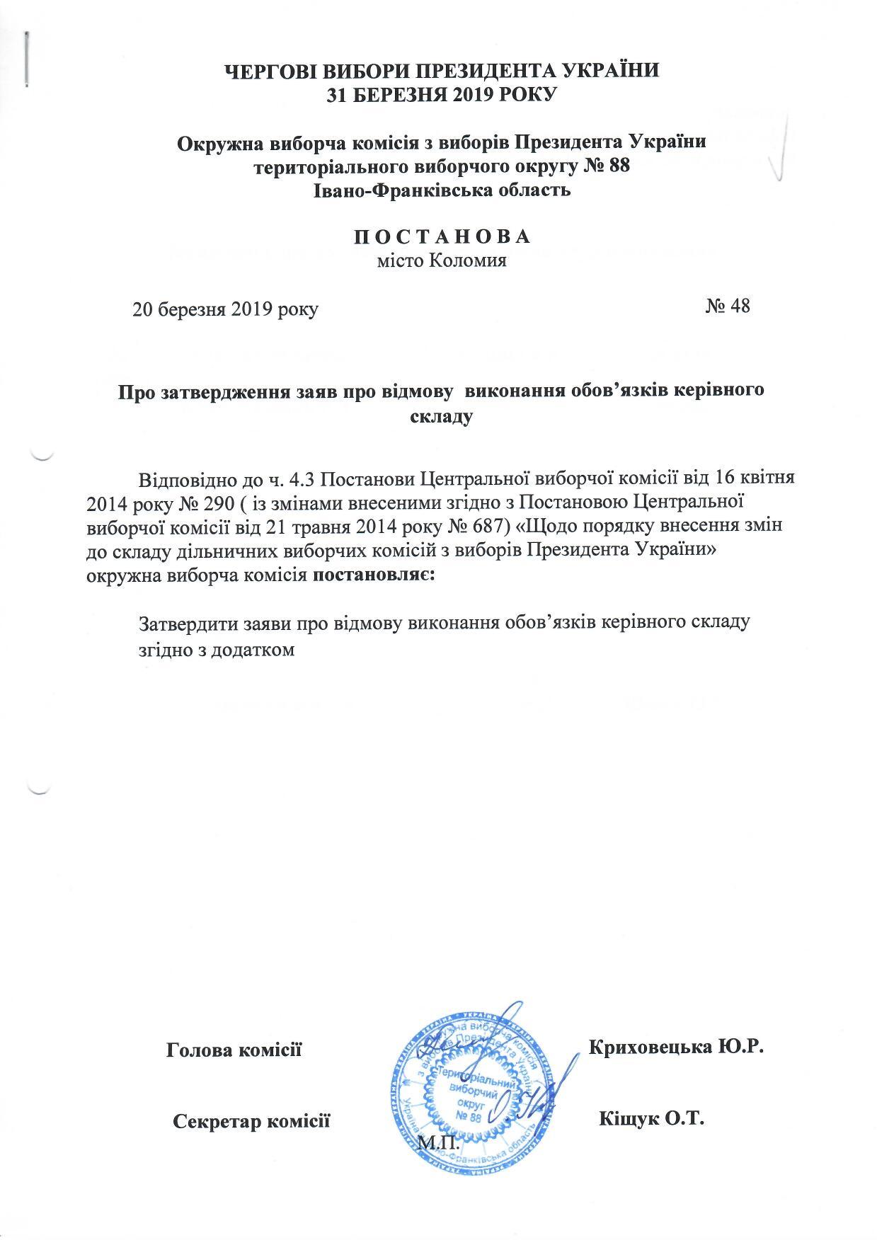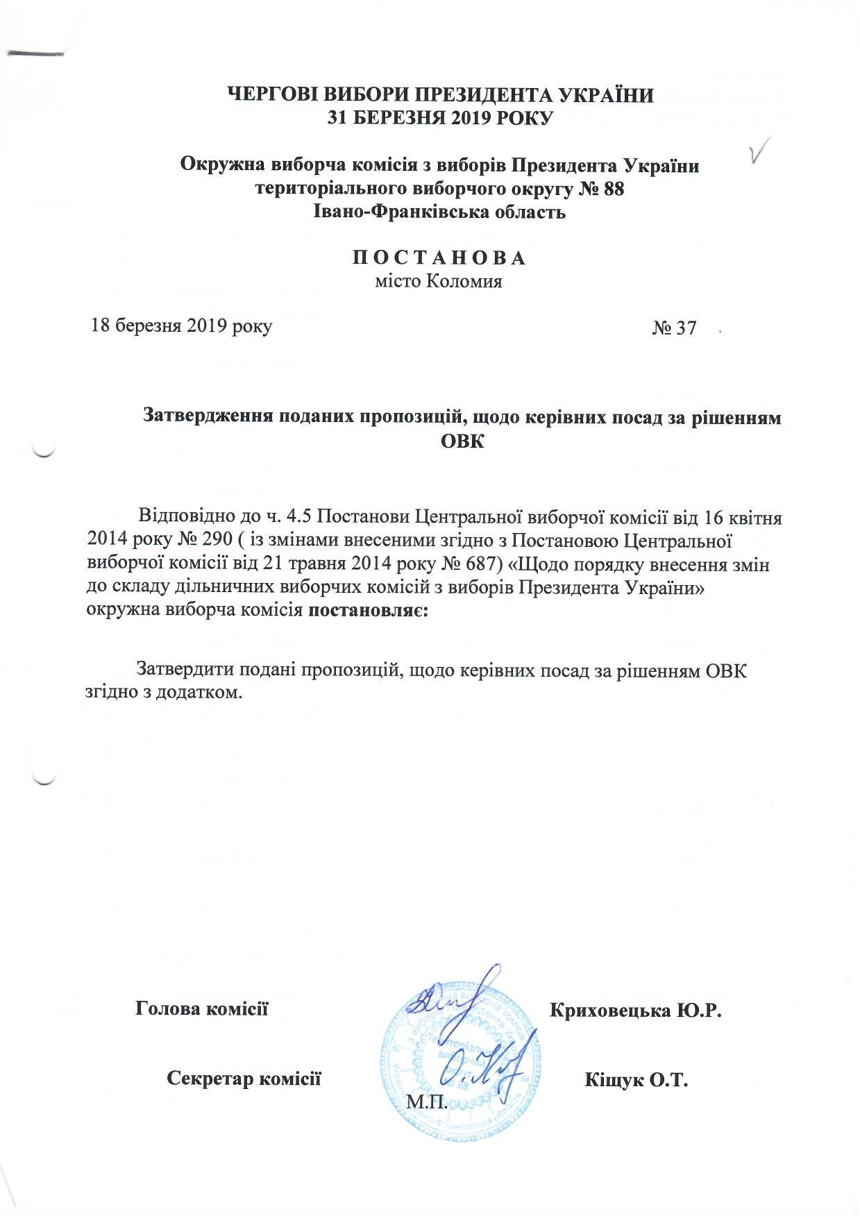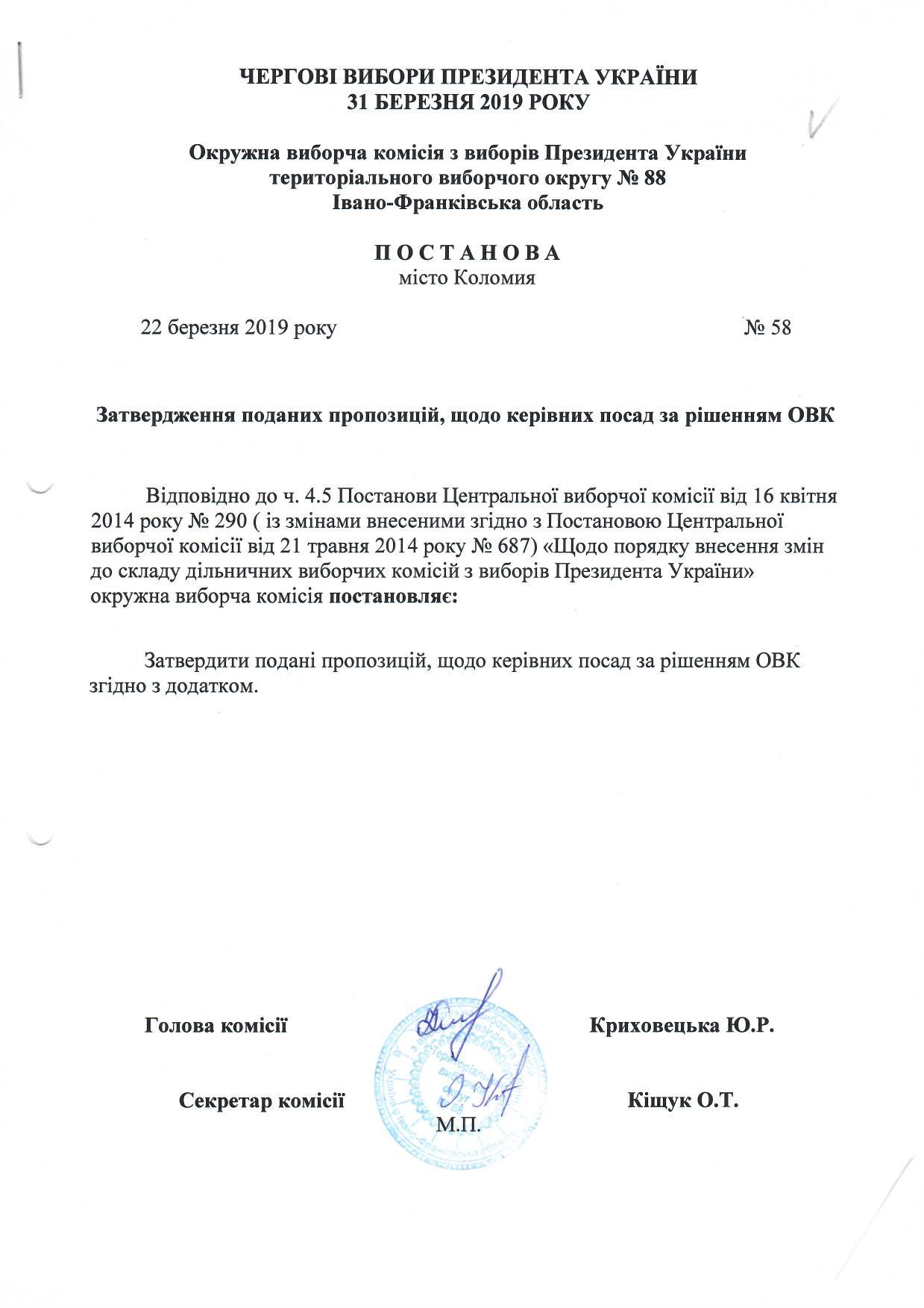 Про утворення дільничних виборчих комісій територіального виборчого округу № 88 з чергових виборів Президента України 31 березня 2019 року |