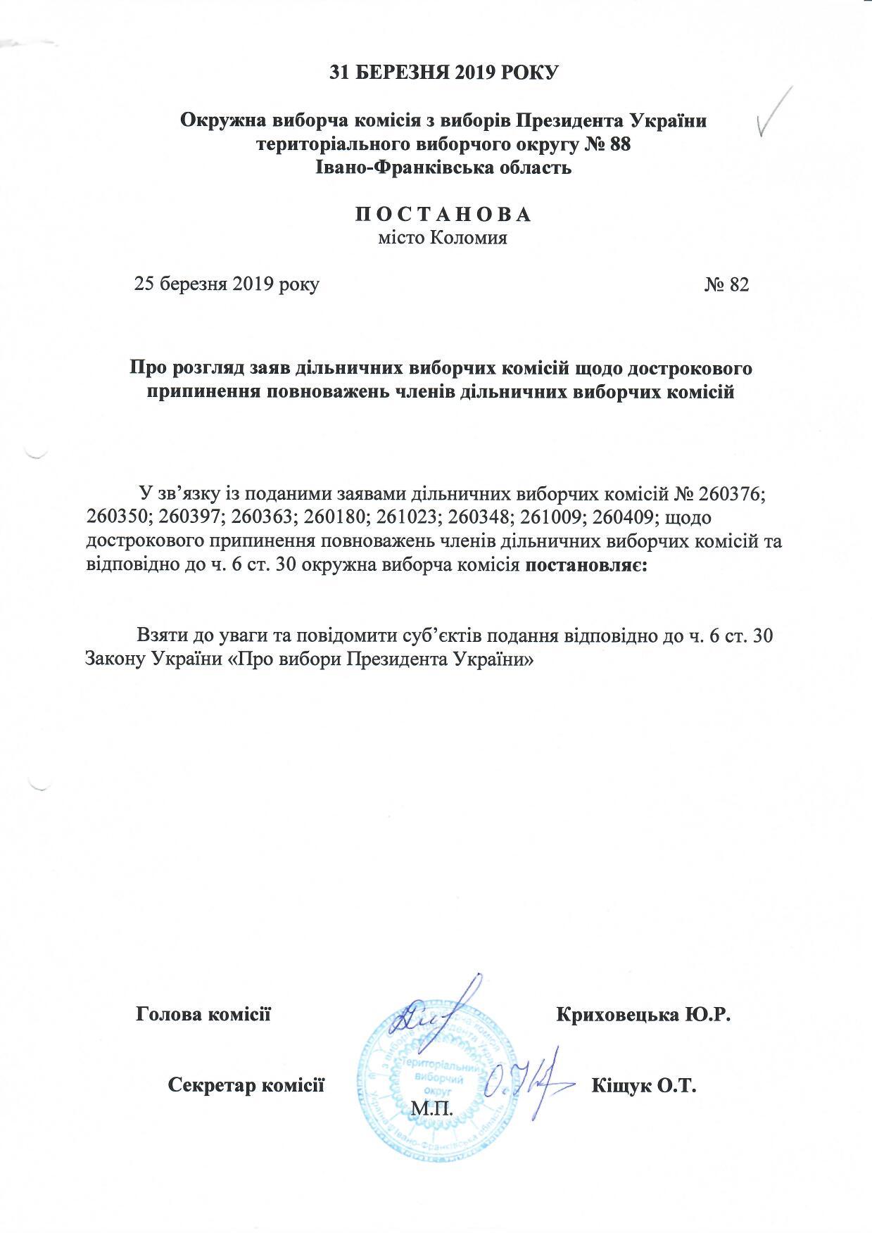 Про розгляд заяв дільничних виборчих комісій щодо дострокового припинення повноважень членів дільничних виборчих комісій |