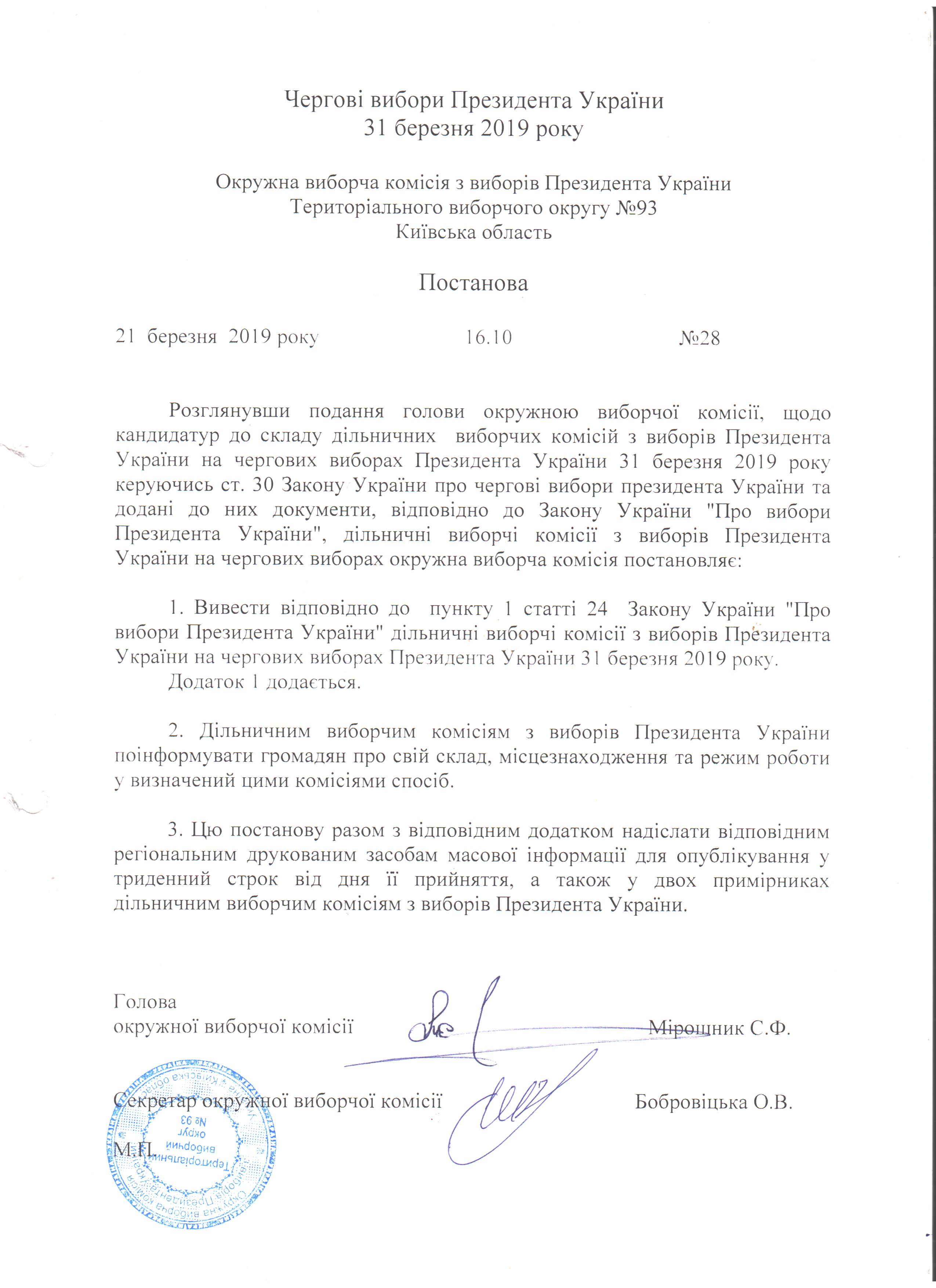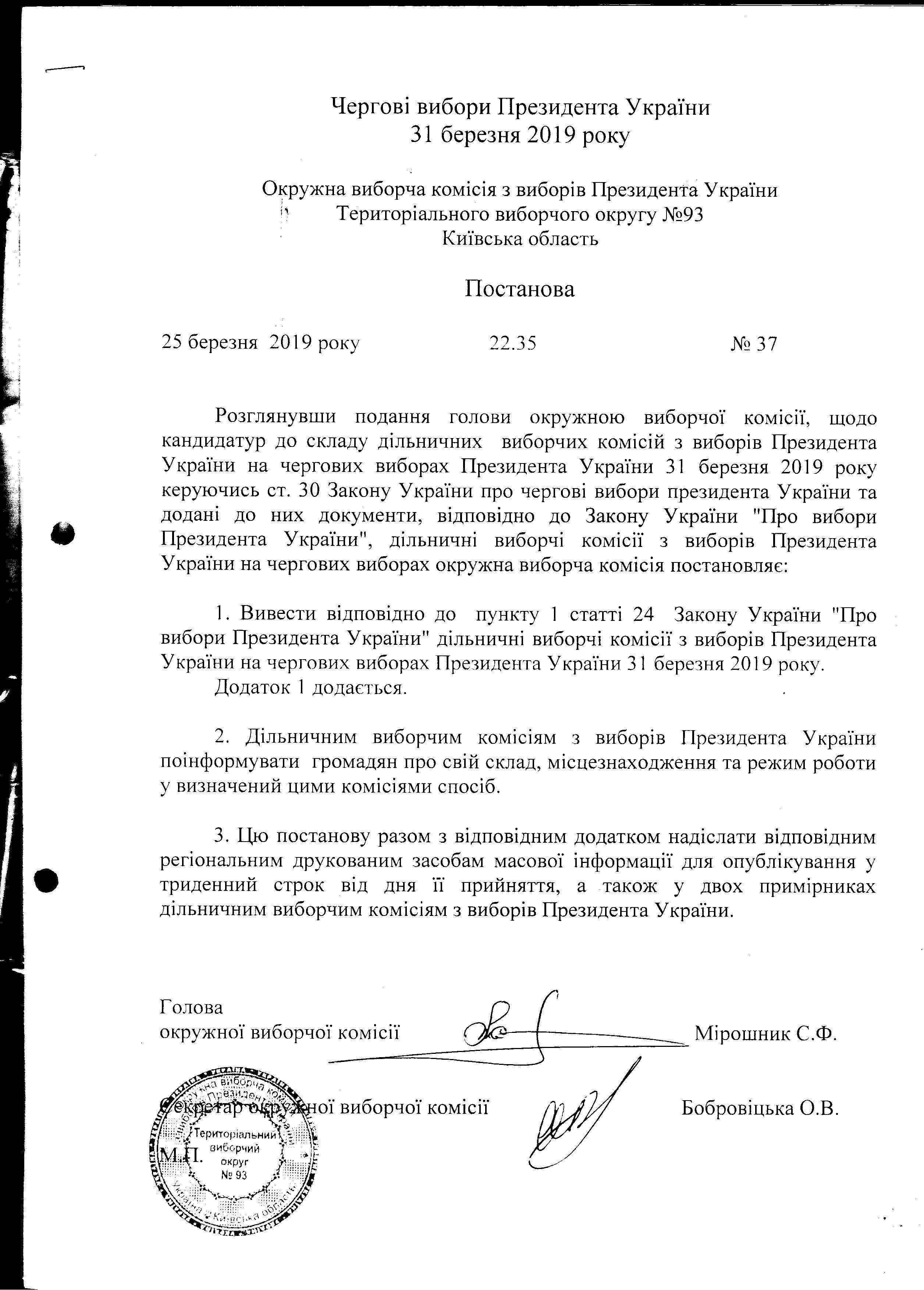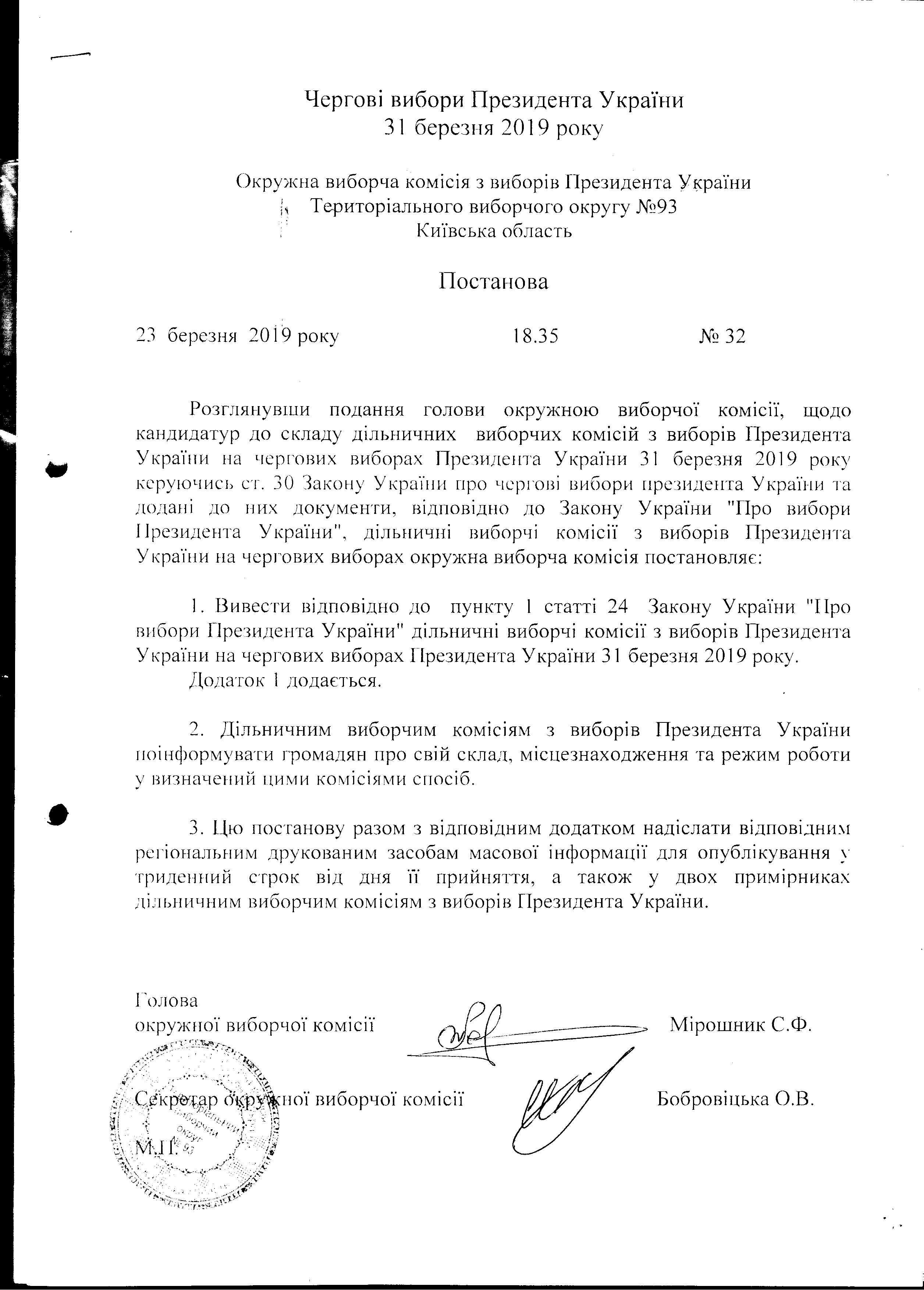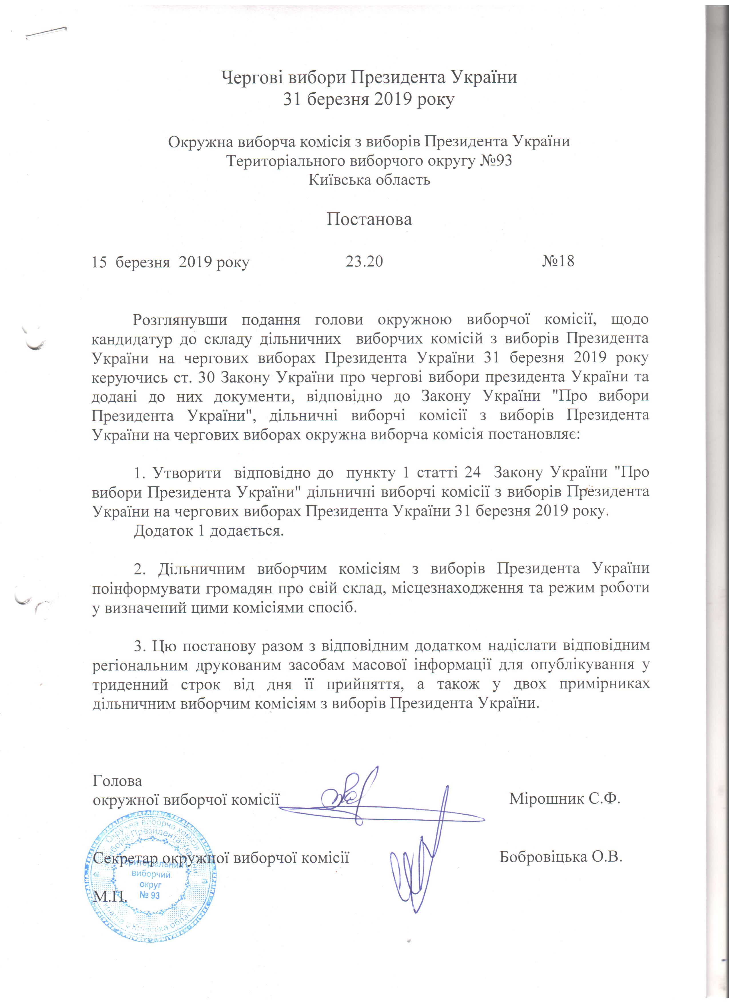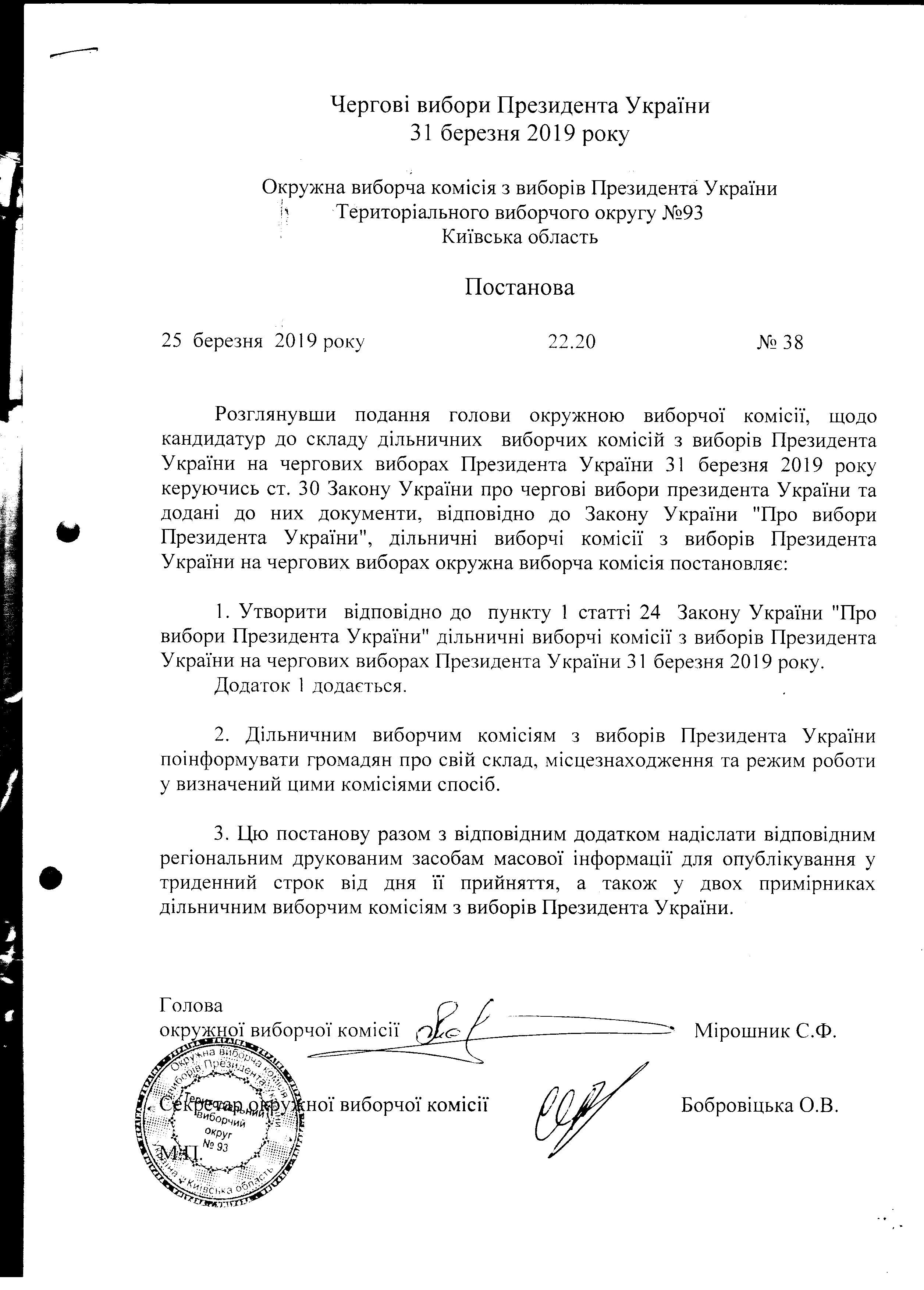 Про утворення дільничних виборчих комісій по ТВО № 93. |