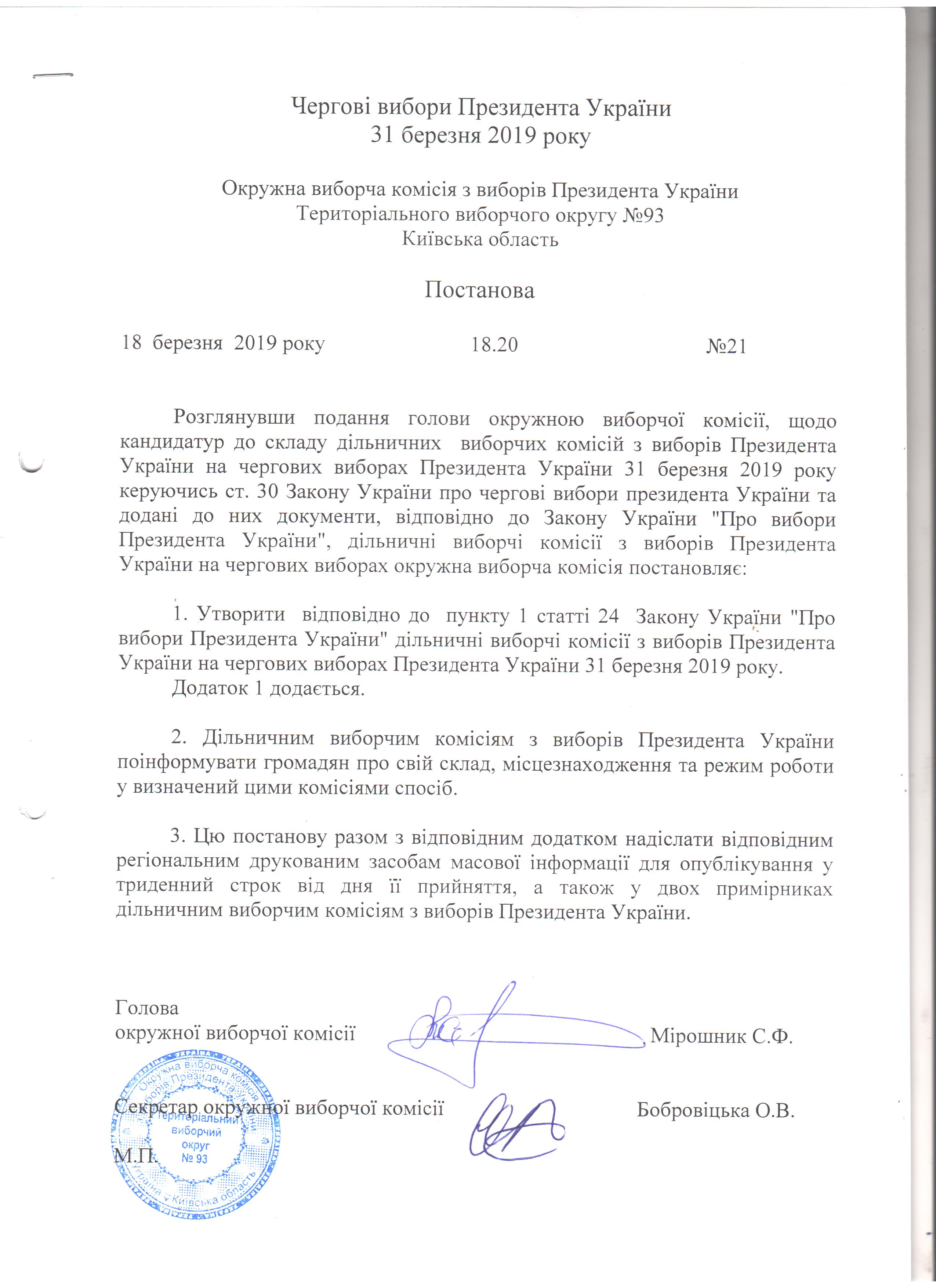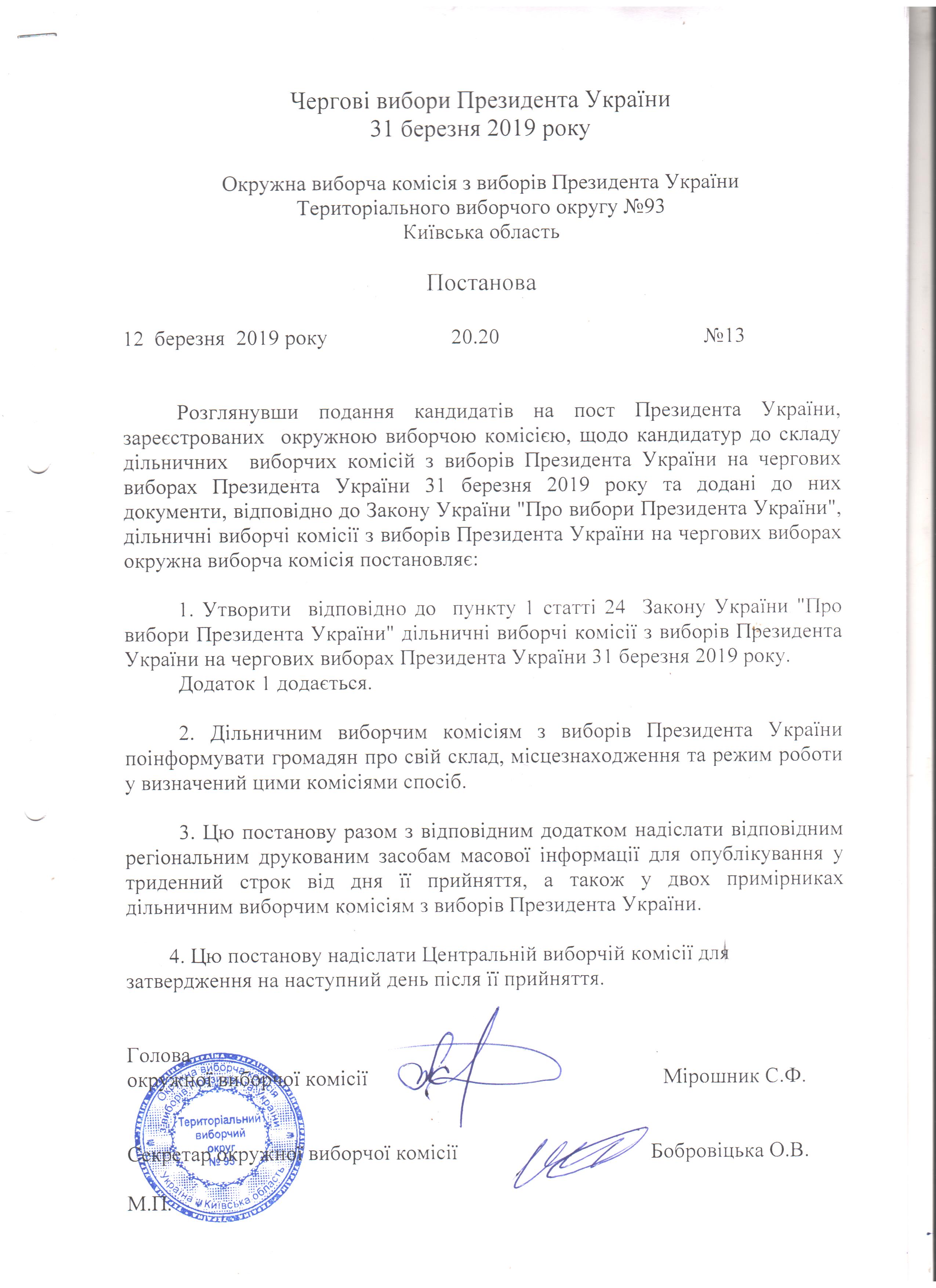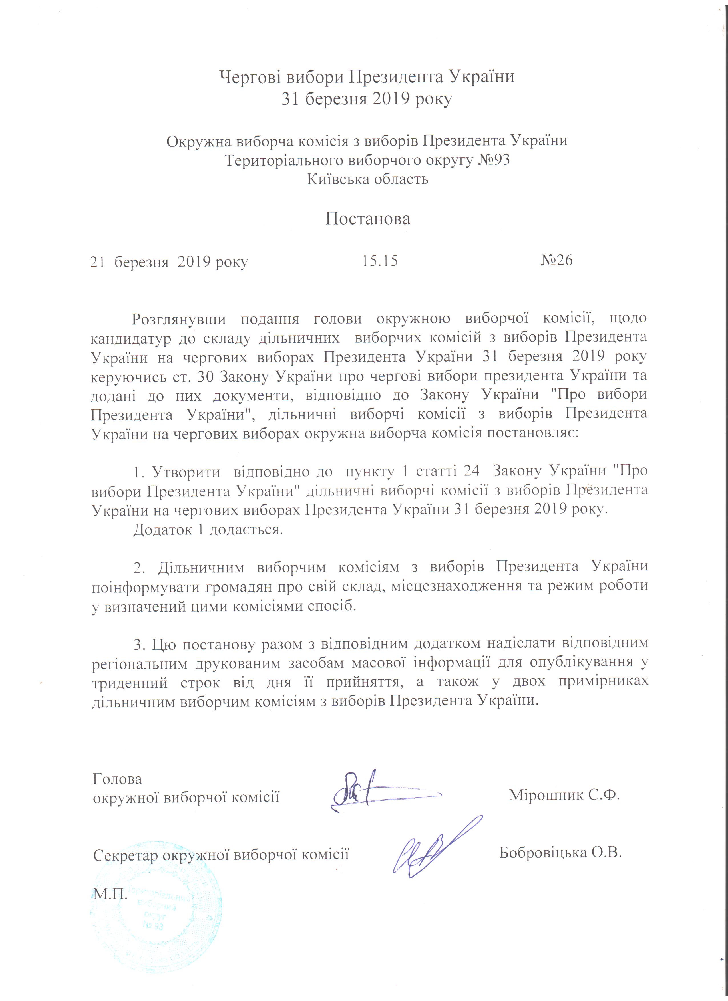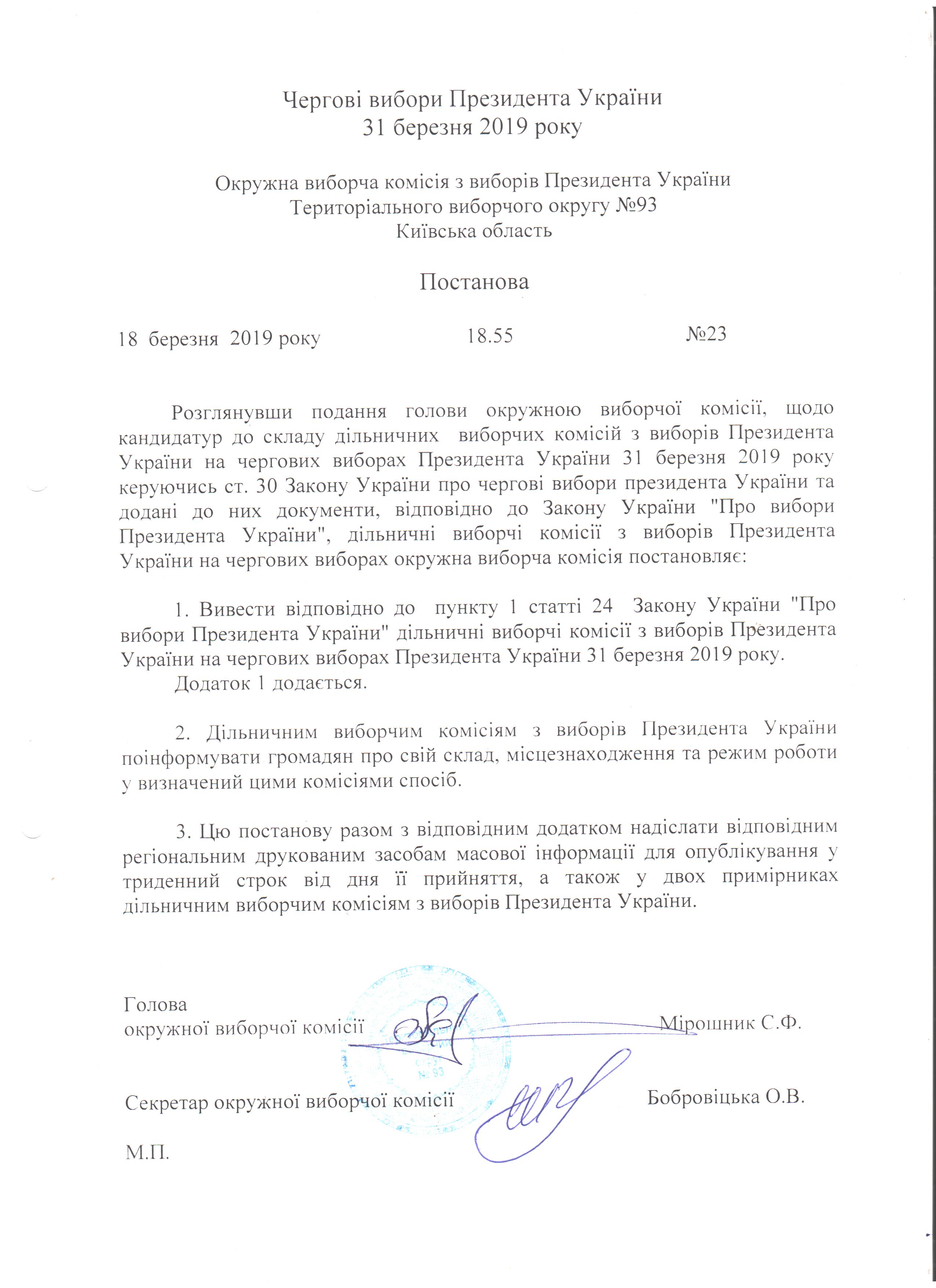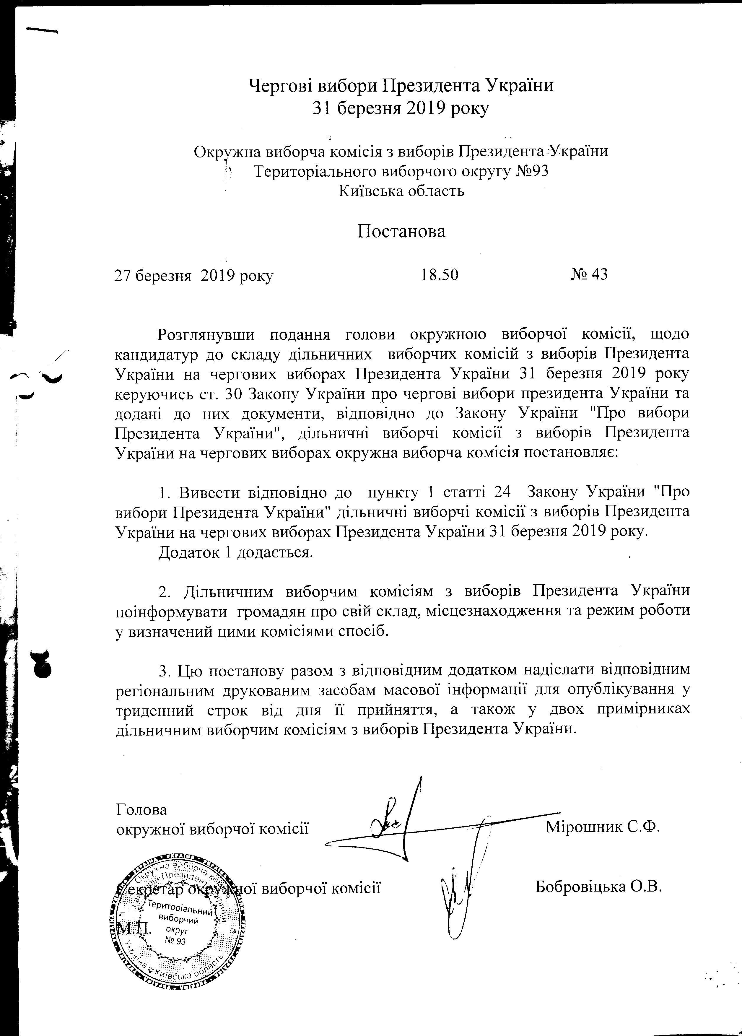 Про утворення дільничних виборчих комісій по ТВО № 93. |