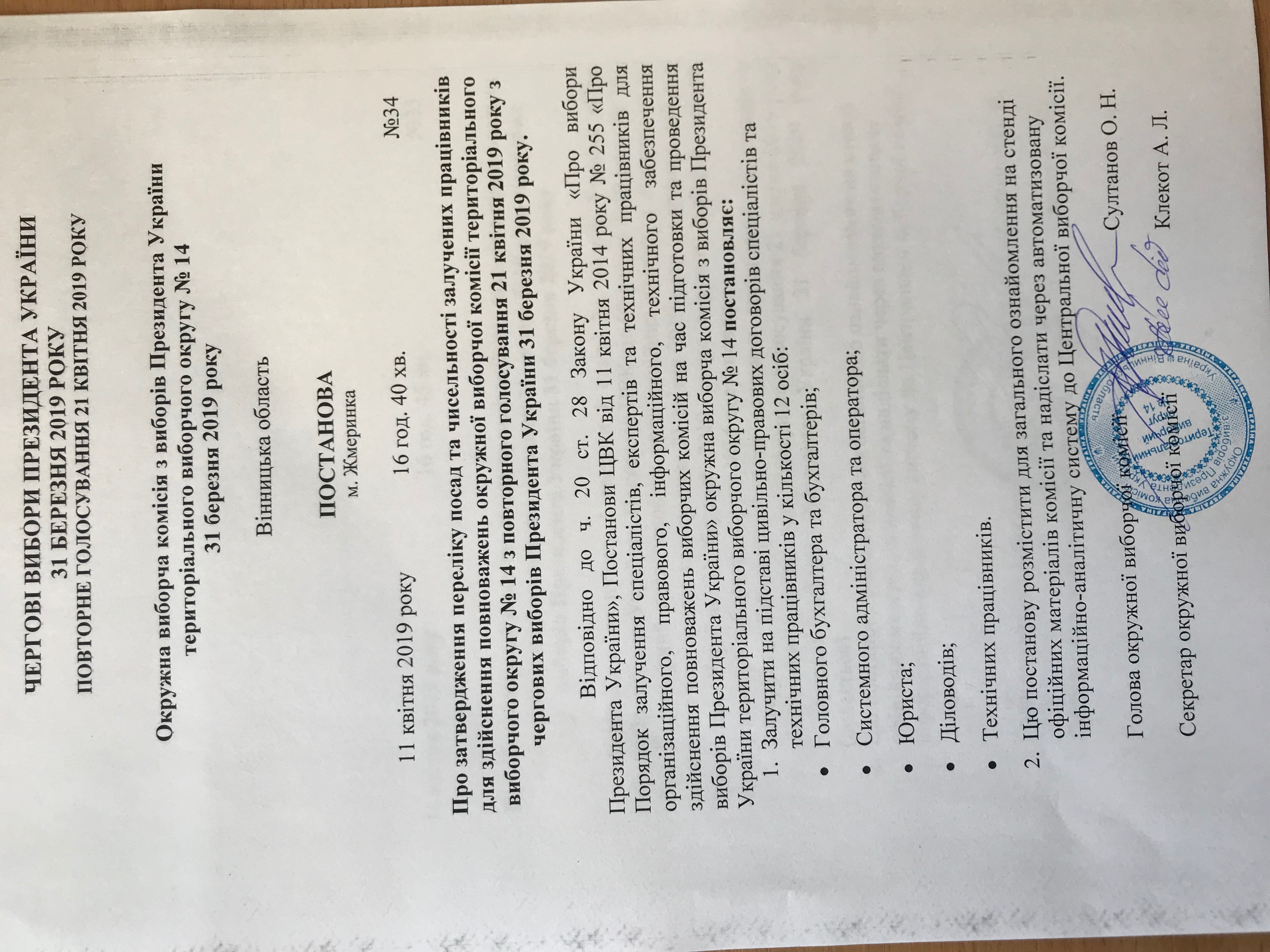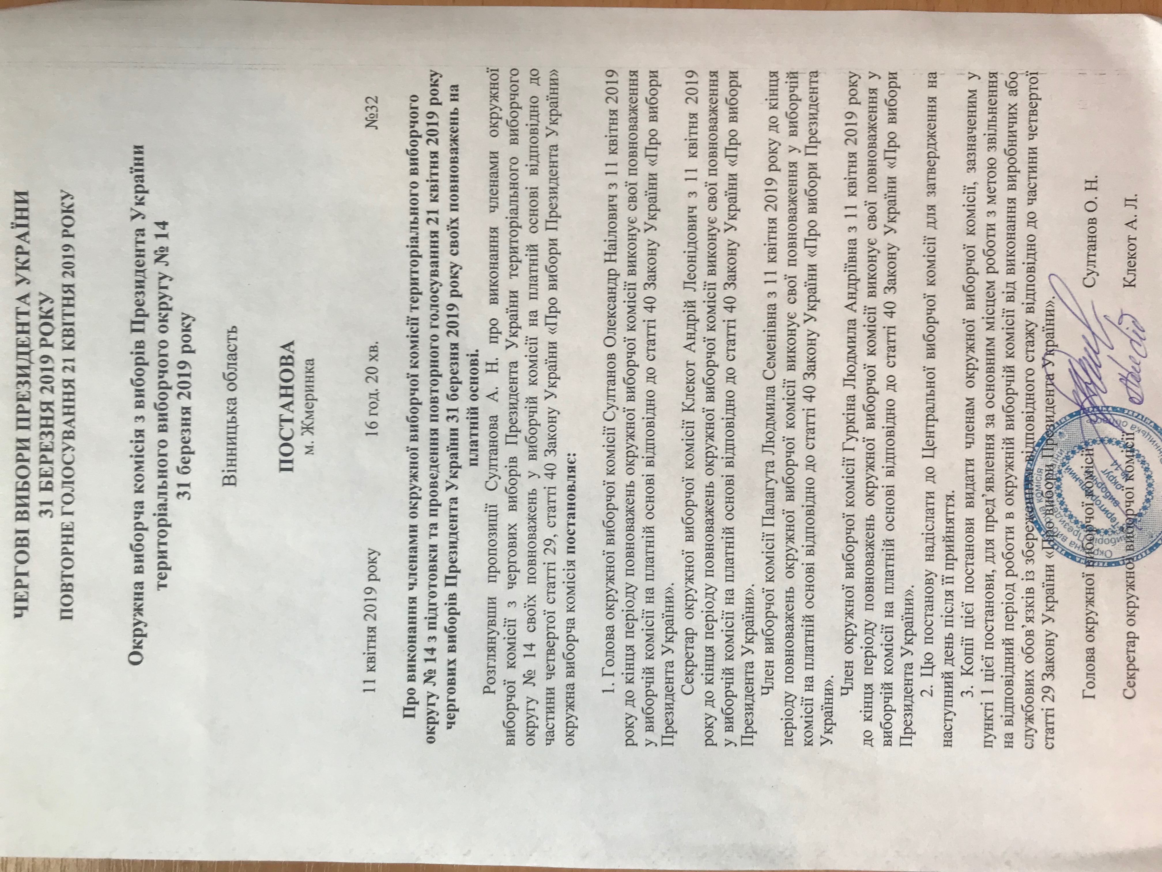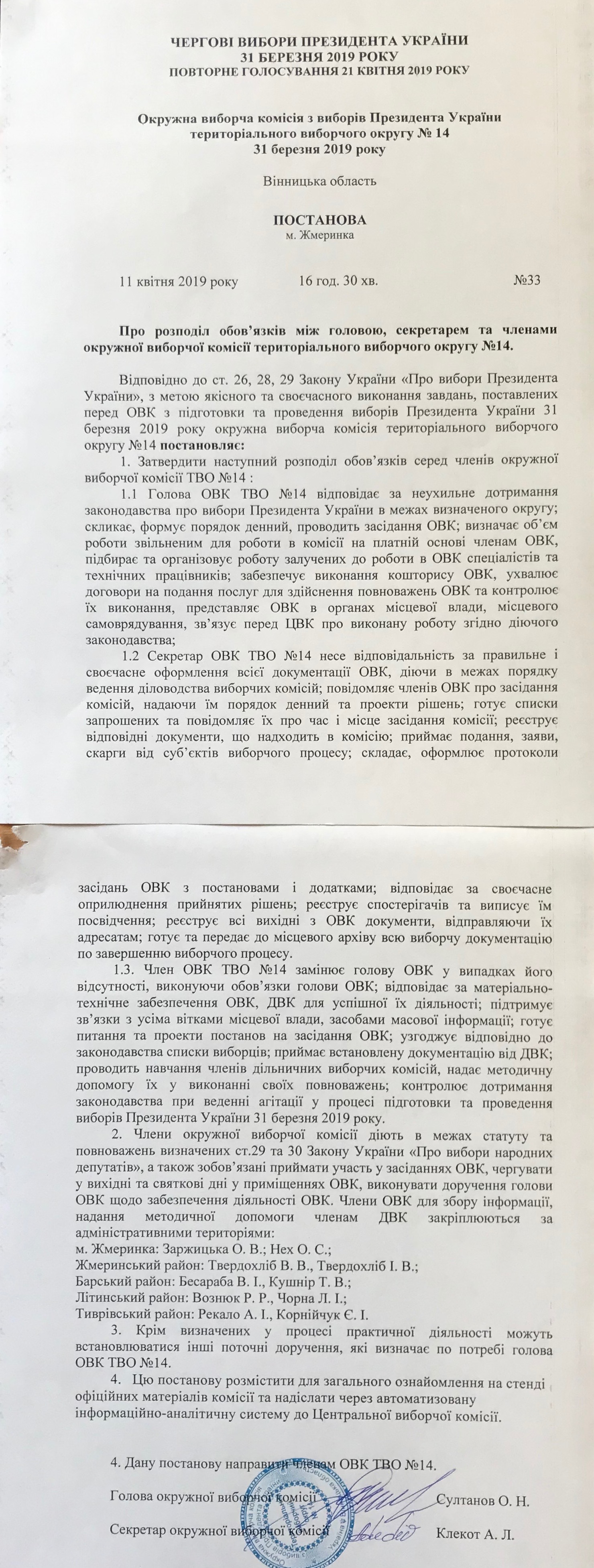 Про розподіл обов'язків між головою, секретарем та членами окружної виборчої комісії територіального вибочого округу №14 |