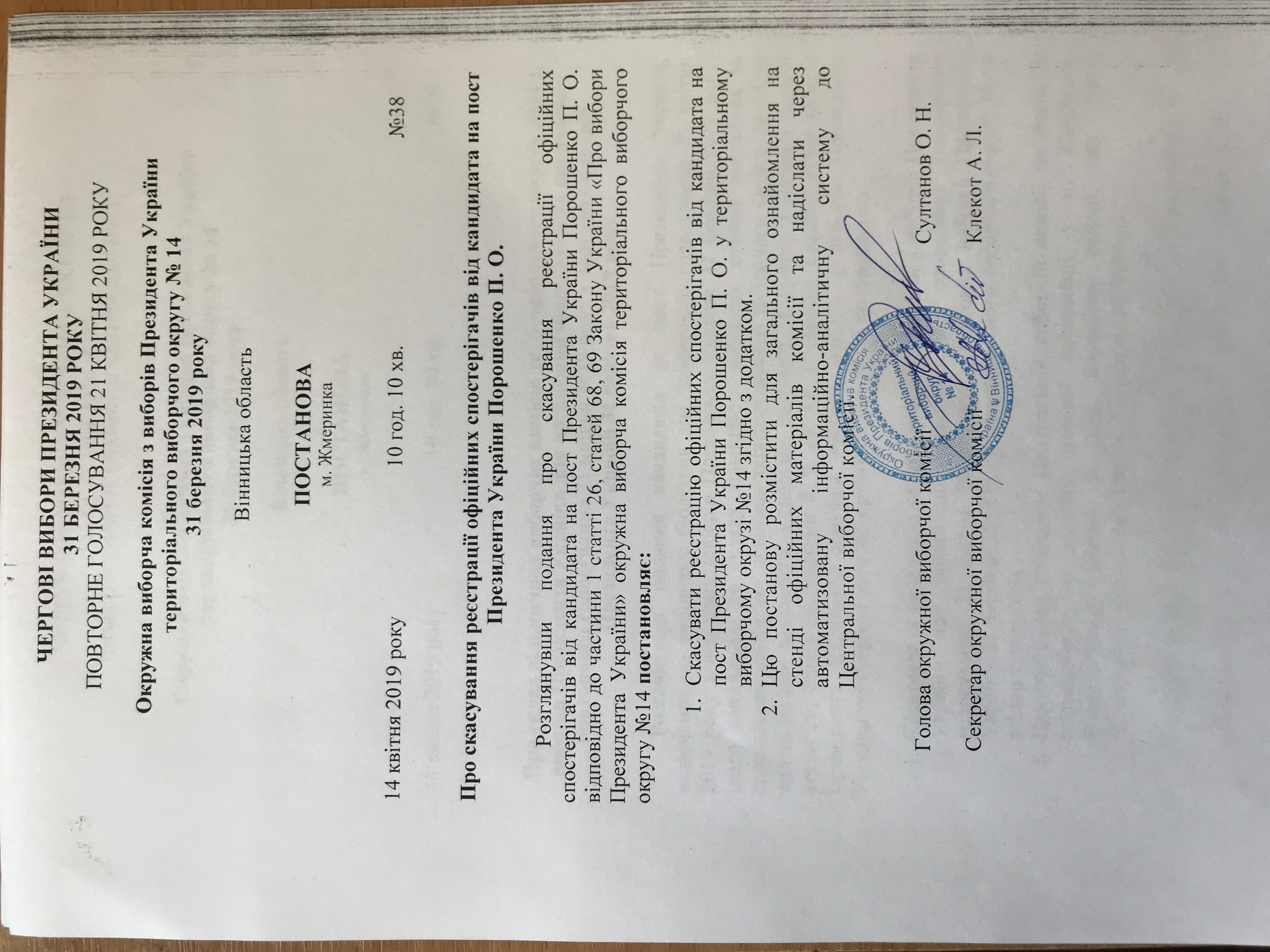Про скасування реєстрації офіційних спостерігачів від кандидата на пост Президента Україні Пошошенко П.О. |