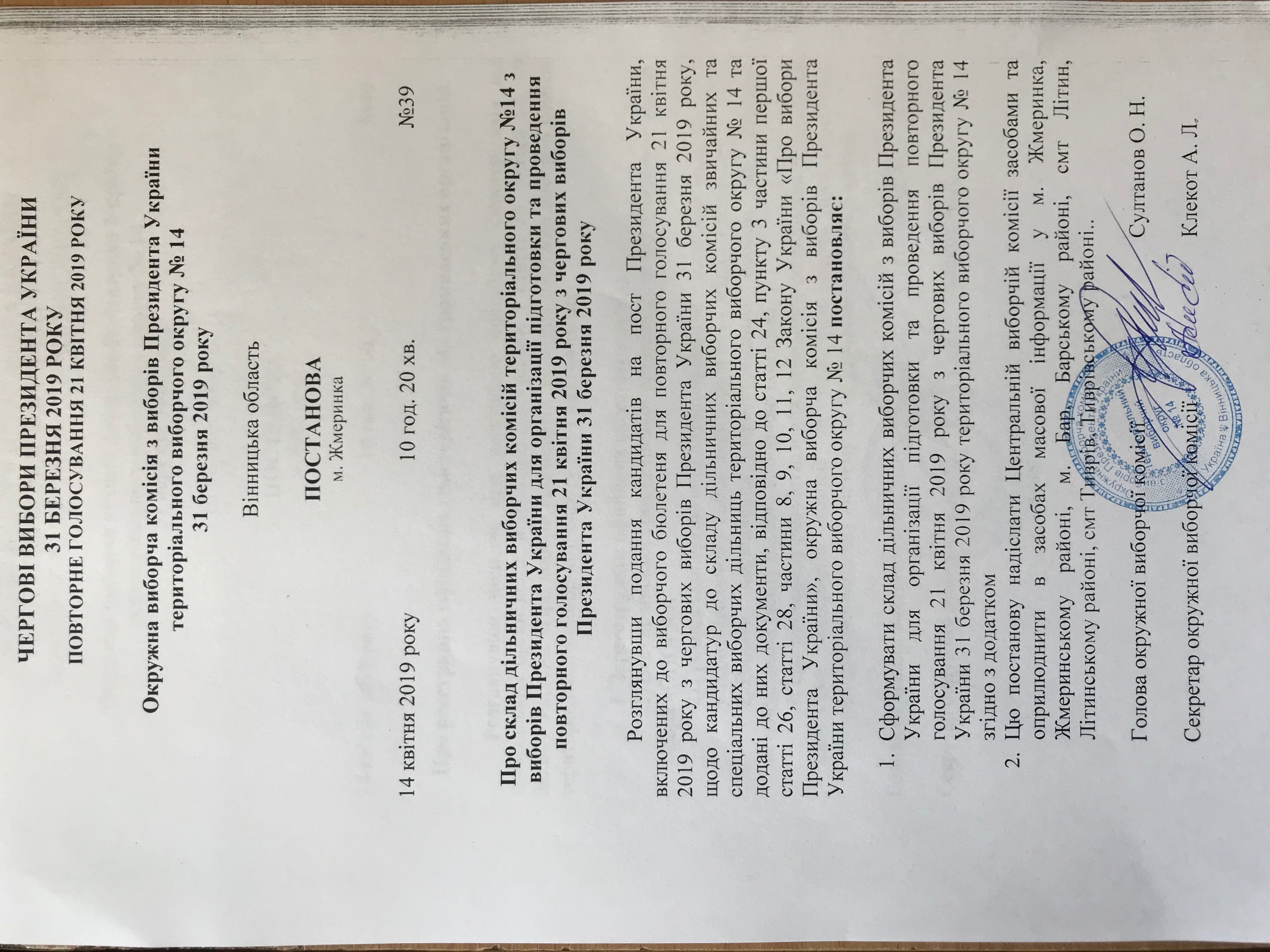 Про склад дільничих виборчих комісій територіального виборчого округу №14 |