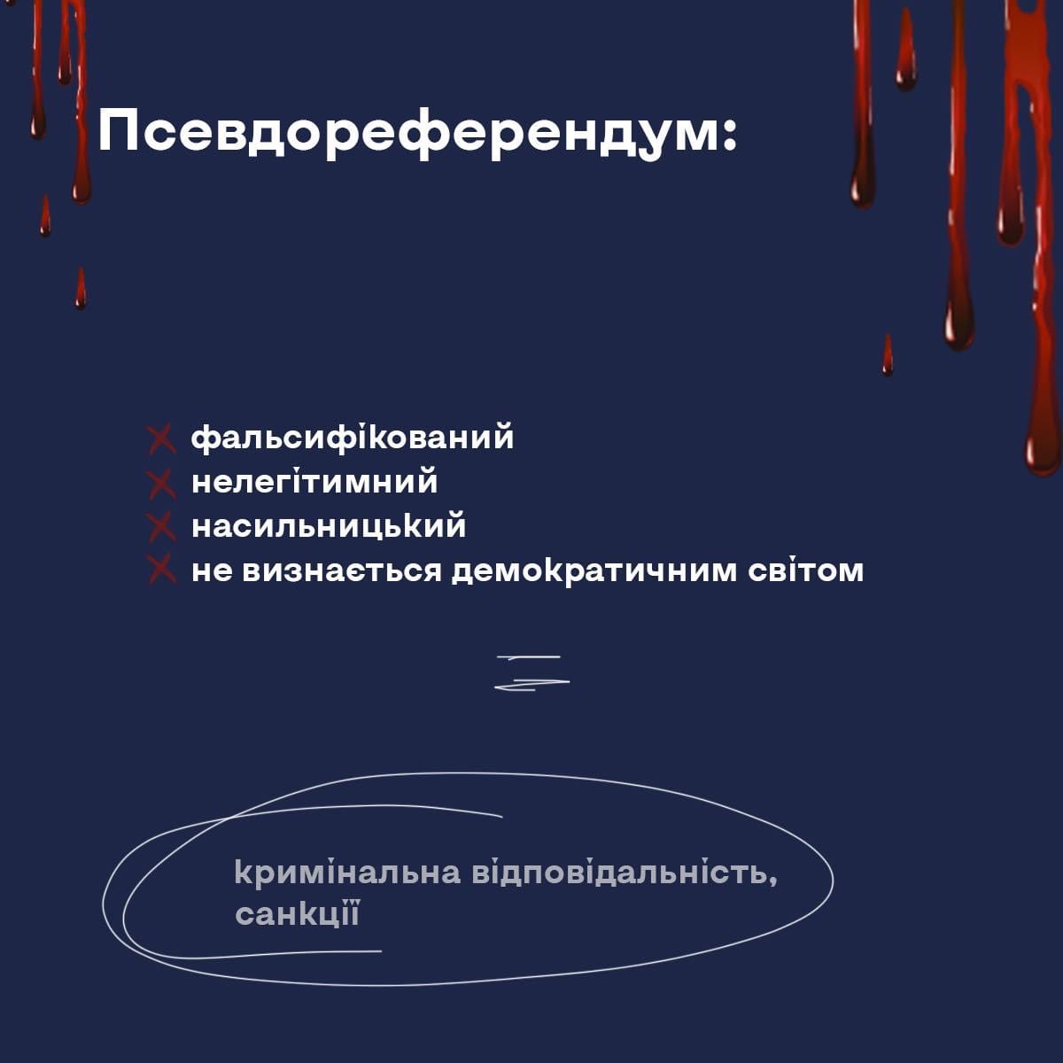 Псевдореферендуми на українських територіях – це наш біль, це моральне і фізичне знущання з наших громадян, це розбій на міжнародному рівні, під час якого у всіх на очах у нас крадуть наші землі, вбиваючи при цьому наших громадян. І все це прикривається видимістю безпосередньої демократії, дійством, що не має нічого спільного з референдумом.